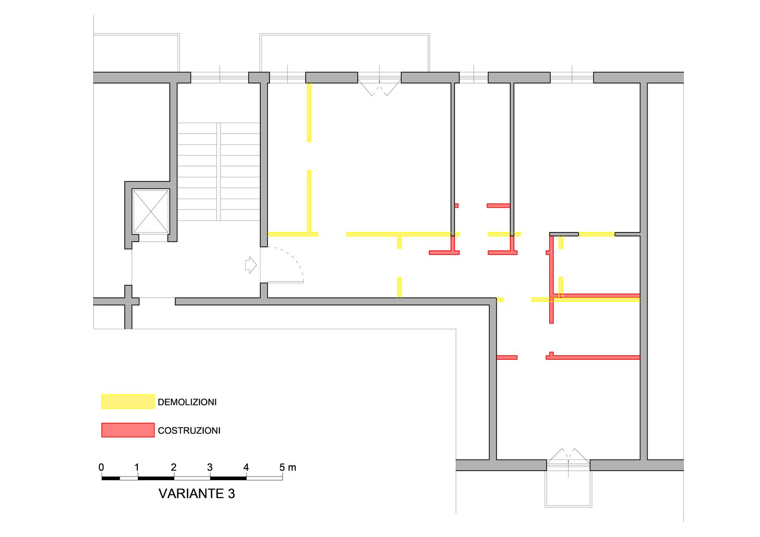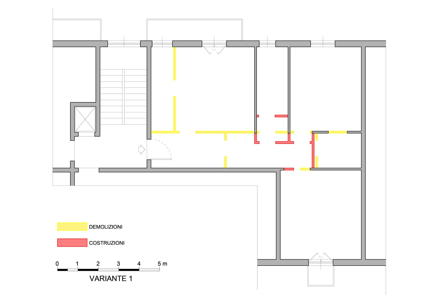 La nostra proposta prevede tre varianti per la ristrutturazione del bilocale, operando comunque limitate opere di demolizione e costruzione, per contenere i costi.