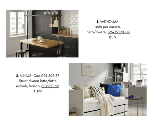 • Lista IKEA completa (nome, codice, quantità)