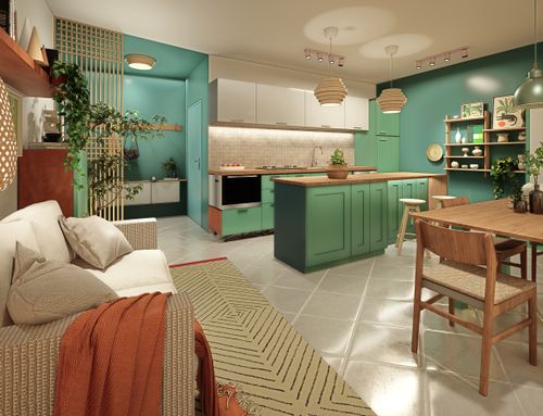 🟢 Kitchen + Living Room: