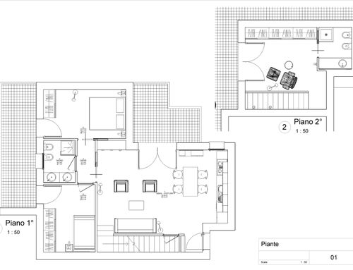 The bathrooms, if possible, must be complete with a double sink and a big shower in the one on the lower floor while the one on the upper floor should not be too "compressed" also because it is our intention to have the space for a washer and dryer.
