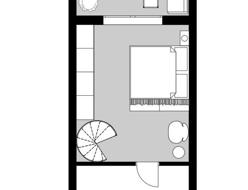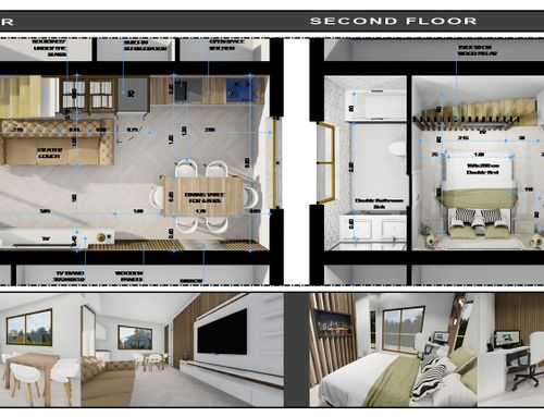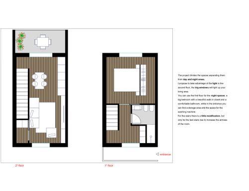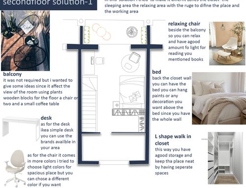 The main difficulties in furnishing the space are related to the presence of the stairs, which makes it impossible to use half of a wall on the first floor and an entire wall on the second floor. I would like to get inputs about how to make use of the limited space available on both floors.