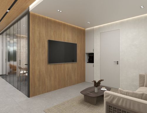 Paredes principales o gris tórtola parcialmente claro o listones o lamas de madera.