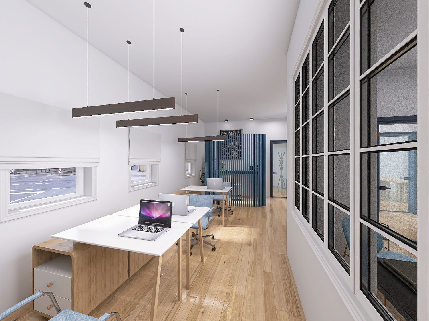 Per quanto riguarda l’illuminazione si è cercato di sfruttare al massimo la luce naturale esistente proveniente dalle 2 vetrine e dalle finestre; l’illuminazione artificiale, realizzata con barre sospese a soffitto e faretti, è stata posizionata in maniera accurata per garantire il massimo benessere visivo, specialmente per il lavoro al videoterminale.