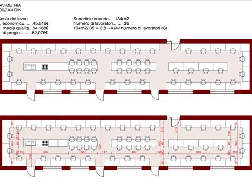 Non hanno bisogno di spazio per archiviare documenti, ma spazio per imparare o archiviare gli oggetti che progettano e/o acquistano. L'ambiente deve essere efficiente, collaborativo, snello, con soluzioni intelligenti salvaspazio e che rimanga facilmente in ordine. Le scrivanie devono essere dotate di armadietti personali, e avere prese elettriche sparse ovunque. Le finestre e le pareti non possono essere modificate nelle dimensioni, solo rinnovate e modernizzate. Vorrei uno spazio aperto. Attualmente l'area è un capannone industriale. Il budget è davvero basso, Ikea è la strada.