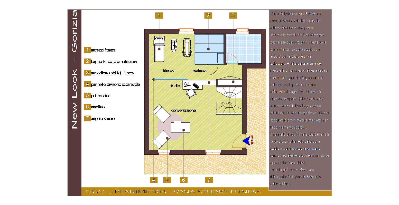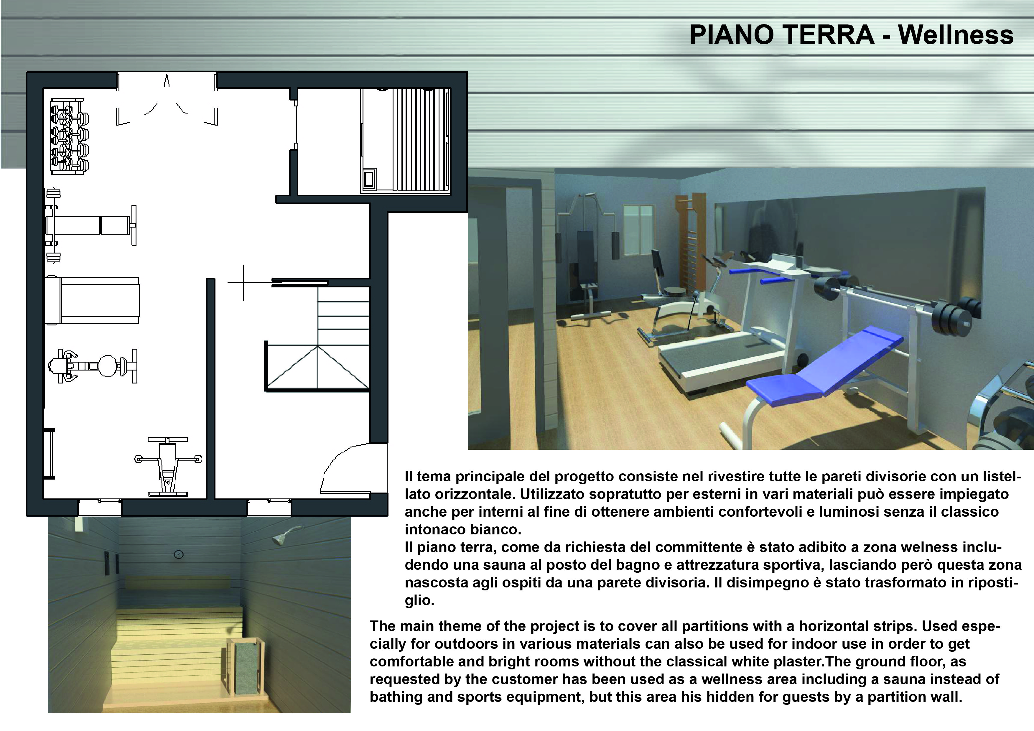 Al piano terra vorremmo ricavare uno spazio palestra-benessere non visibile agli ospiti (visto che la cucina ed il soggiorno si trovano al piano di sopra).