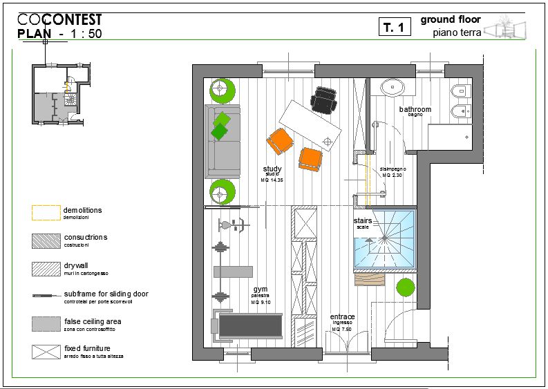 On the ground floor we would like to make a space gym and wellness center is not visible to guests (as the kitchen and living room are located upstairs).