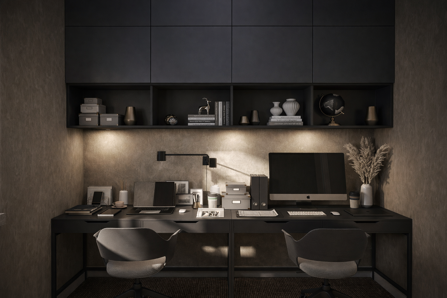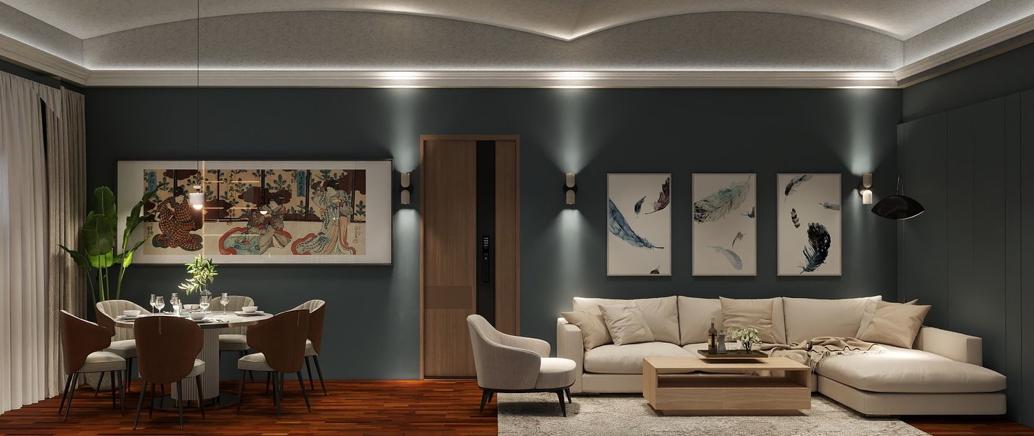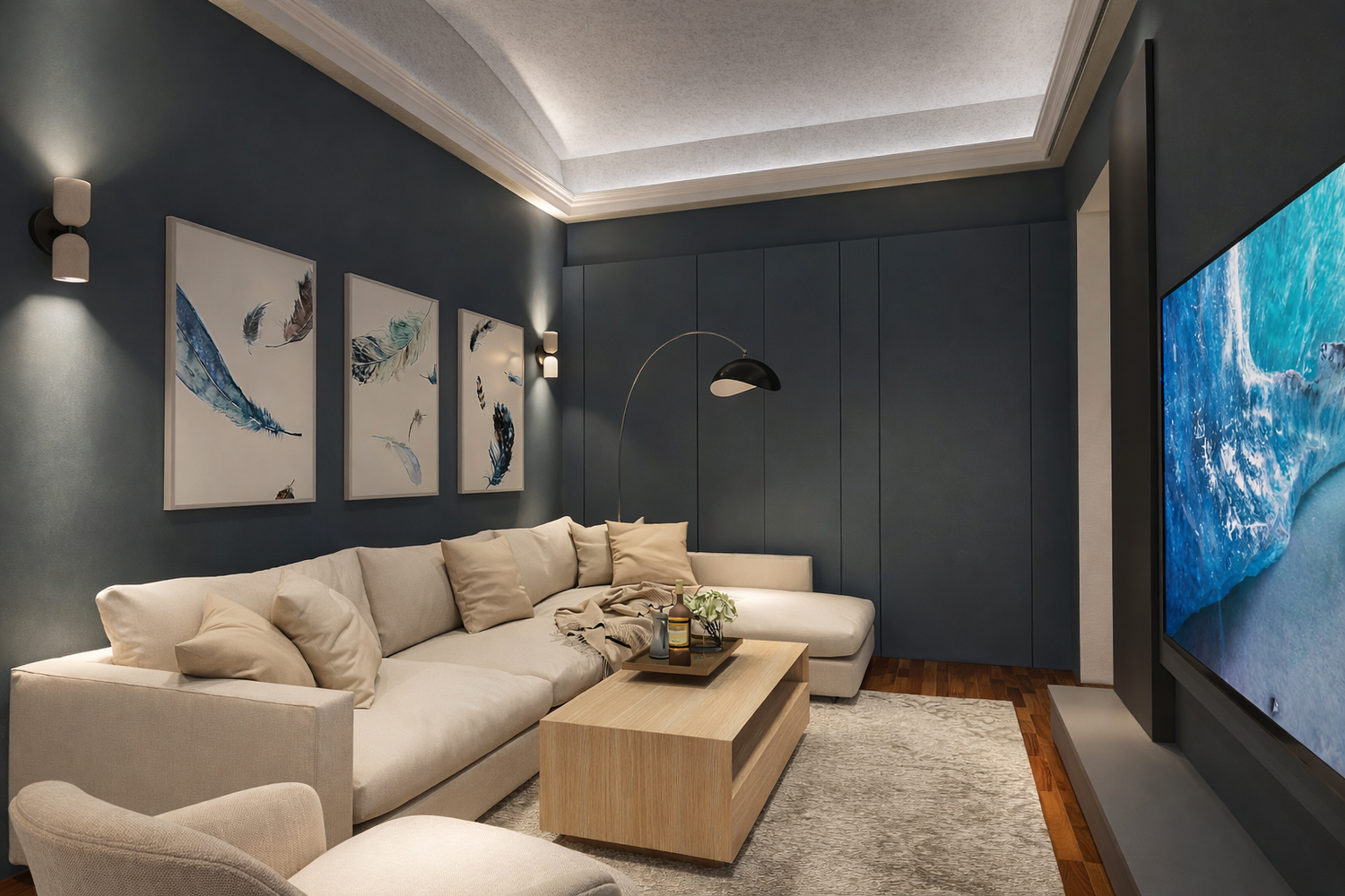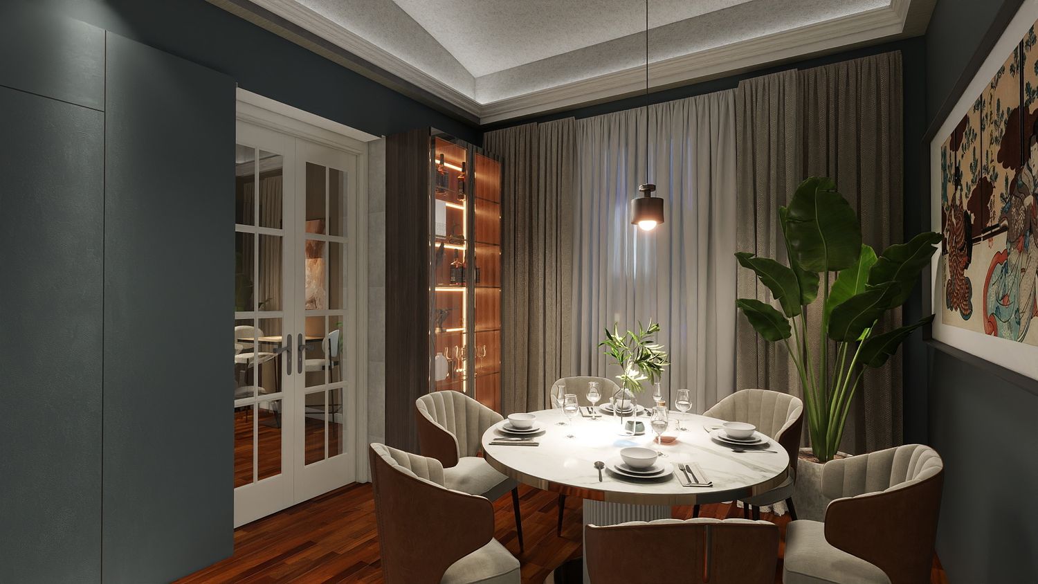 La zona giorno è concepita come uno spazio coerente e funzionale, con arredi equilibrati e percorsi fluidi. L’illuminazione indiretta tramite cornice perimetrale valorizza le volte a botte, enfatizzandone la geometria e creando un’atmosfera luminosa, elegante e non invasiva.