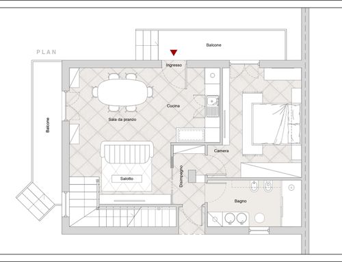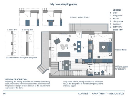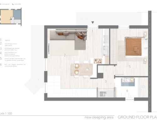 Dear designers, I need to create a new double beedroom in the living area. The living area is now composed of the kitchen and the big living room. I love elegant style with some elements of classic italian style but without being kitsch. I want the walls to be in light colours and I want good quality furniture made of beautiful, solid materials. Thank you