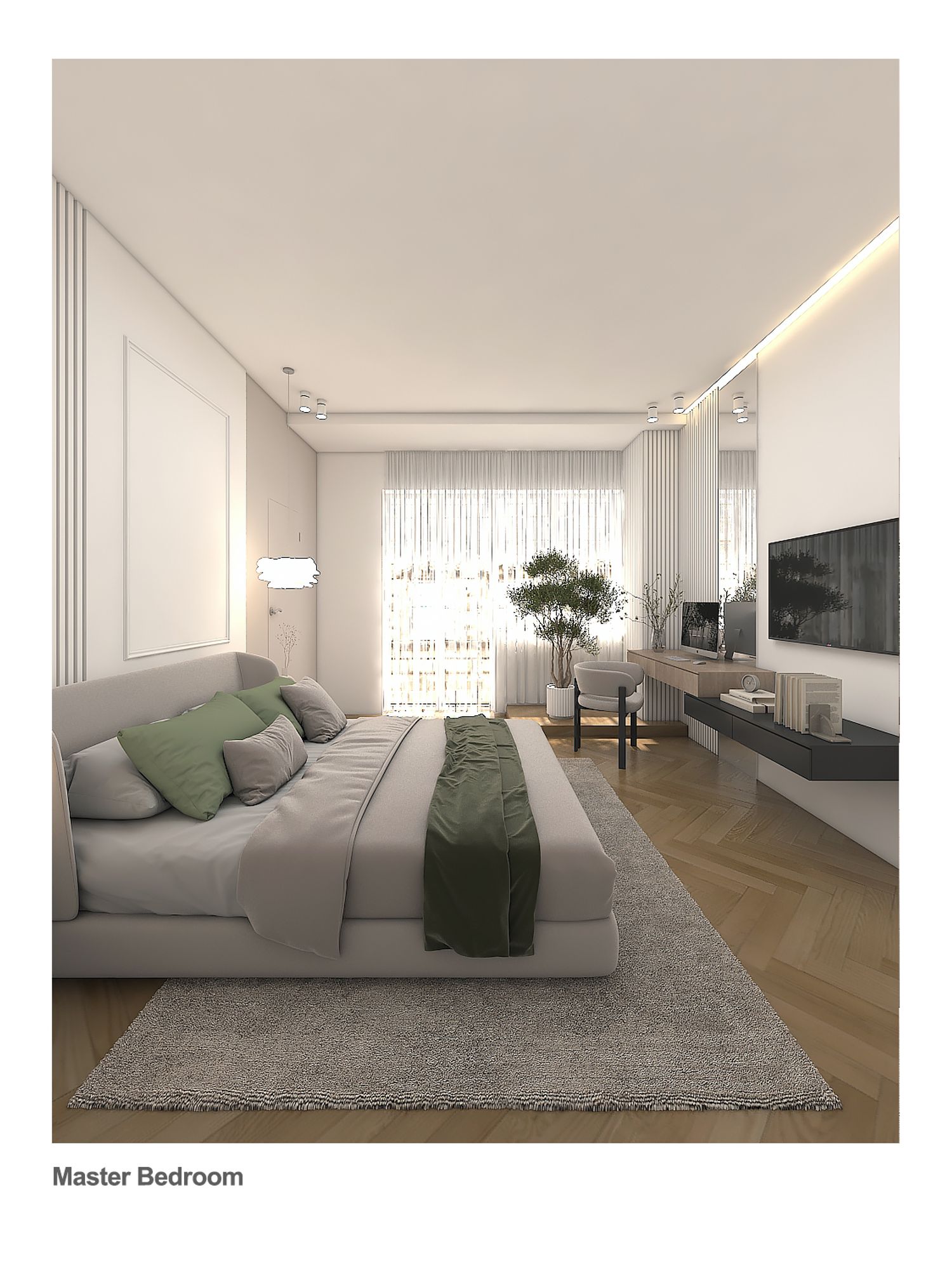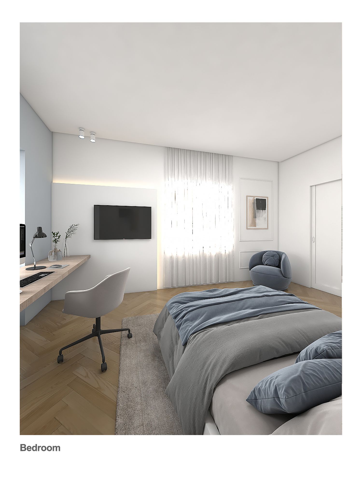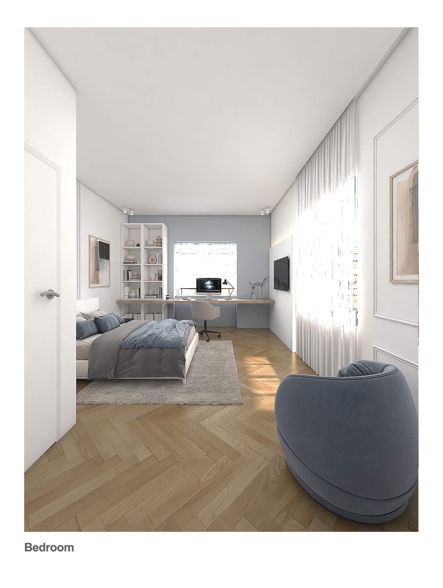 The green and blue colors used as complementary colors in the bedrooms create a color contrast with the bright colors, increasing the sense of calm in the rooms.