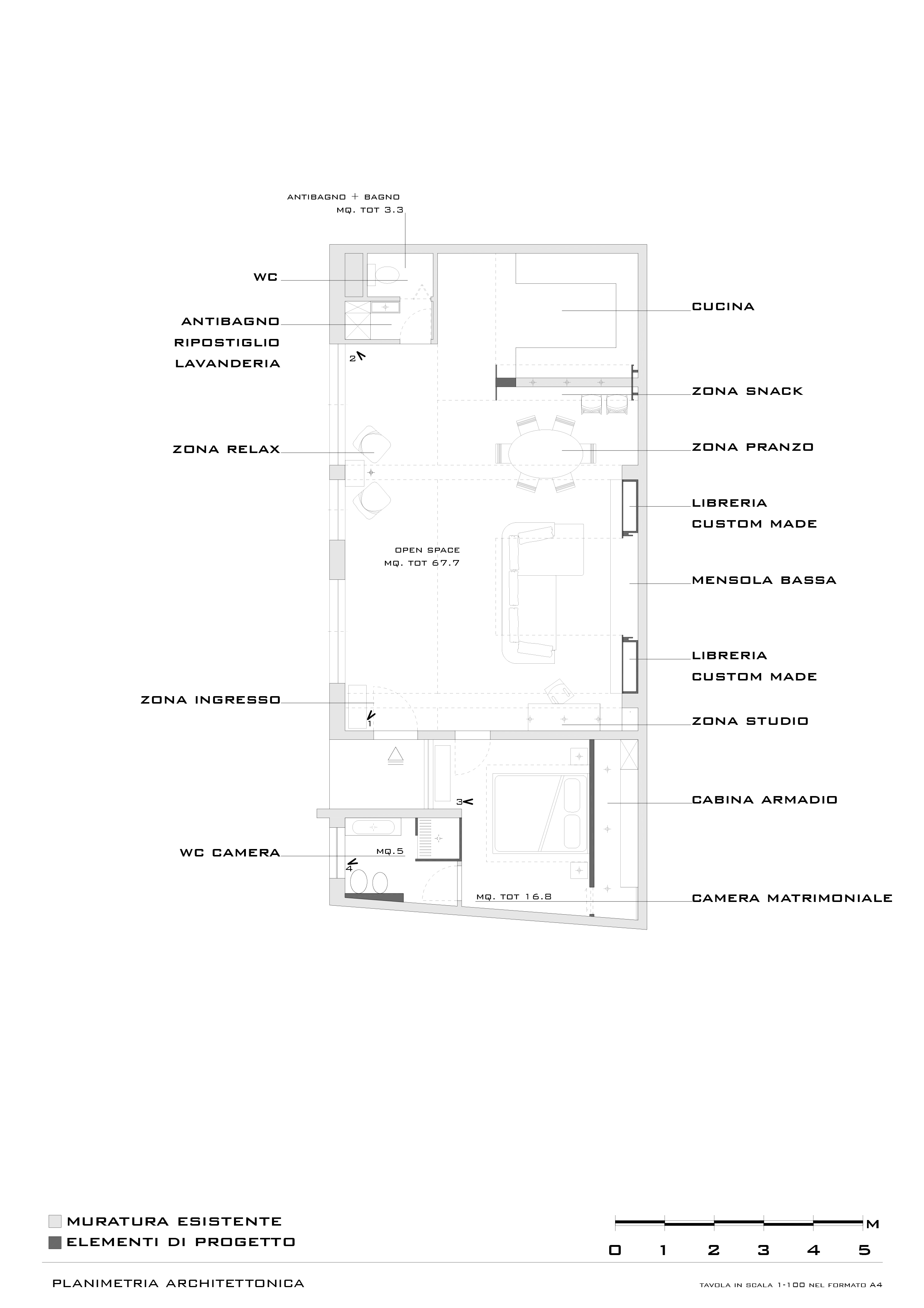 5) Arredare lo spazio con: Libreria/e, divano (possibilmente in