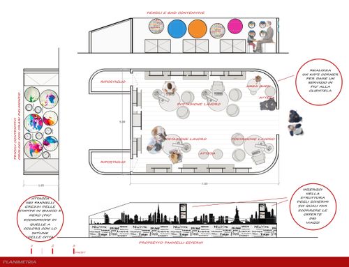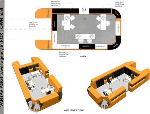 è un agenzia di viaggi situata in un centro commerciale molto famoso (FOX TOWN) ....io preferisco uno stile modermo ma anche altri stili sono ben accetti ....ci devono essere quattro postazioni lavoro.....il budget è compreso tra i 13/15000 euro ------------------- is a travel agency located in a famous mall (FOX TOWN) ...i prefer a modern style but is ok also other style ....there's must be four desk...the budget will be between 13/15000 euro ...