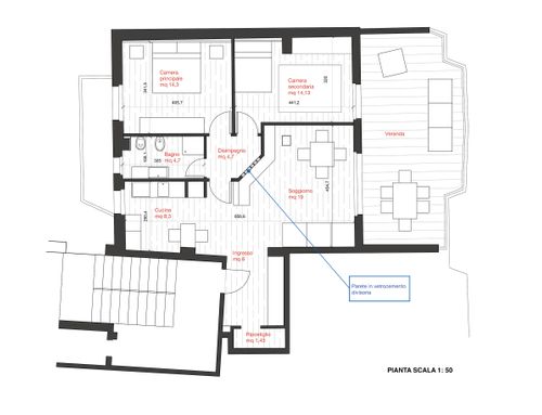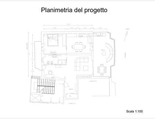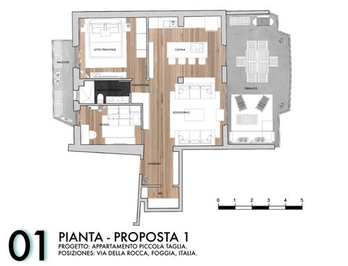 4) prevedere un infisso scorrevole nella zona giorno (larghezza circa m 2,40) per accedere al terrazzo