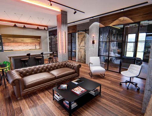 3) stile industrial - parquet - qualche elemento/parete in mattoncino e con pilastro/trave in cemento grezzo