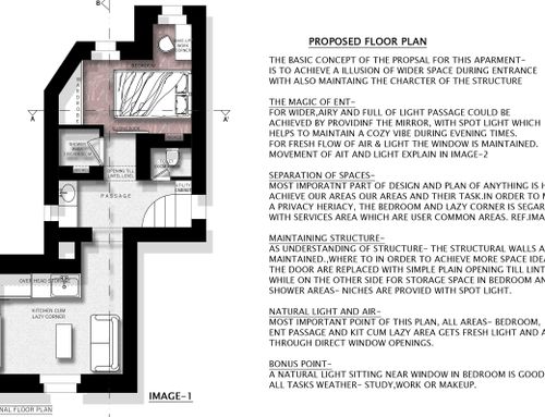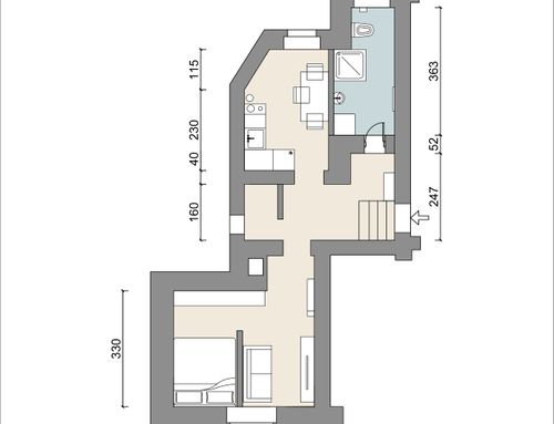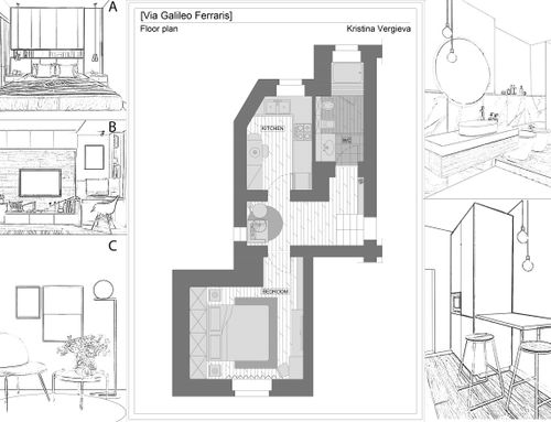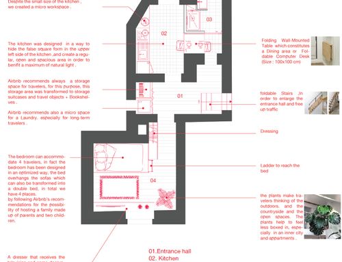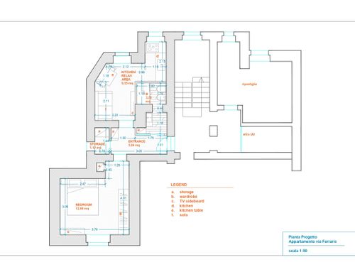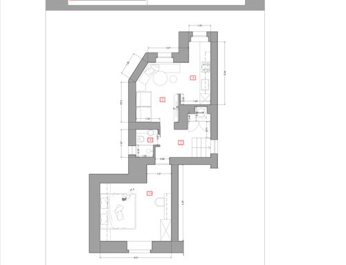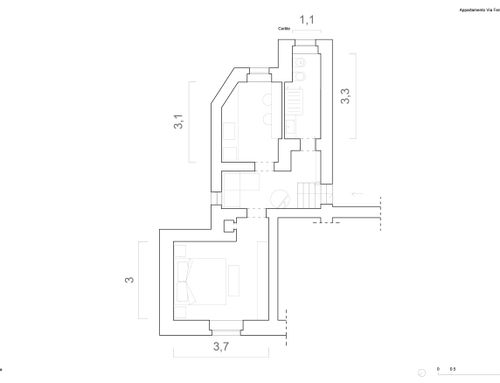 It's vey small apartment- I want to use for rent with AIRBNB. for this reason I need bed for two people, small kitchen , bathroom and a small place for relax. Where is a WC now so small and no shower maybe better to create in "stanzino " new bathroom ..in the "stanza window high from the floor 140 cm and in the " cucina" and "stanzino " 110 cm - I like small apartment like in Seol &Tokio - very minimalist and soft .
