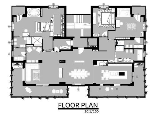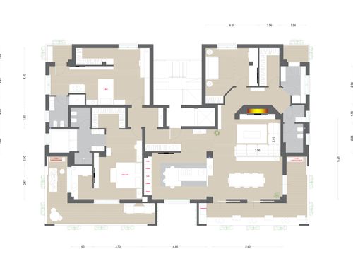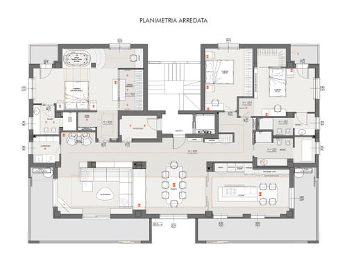 Our tastes absolutely tend towards the modern, we also like situations of contrast between two genres: modern + rustic. We are projected towards an open space (kitchen area + living room), we love light and large windows, the area allows it, we also love green areas. Also I would like an innovative room for my son (12 years old), his room is on the left side of the house with bathroom in the room. In my room (left side with en-suite bathroom) we would like a whirlpool tub, but inside there is a supporting pillar that is in the "middle" and we also have two built-in wardrobes.The kitchen is characterized by a central island and additional side wall units we would like a small table for 4 near the island. We would like the kitchen area to be separated from the living room by a sliding glass door, followed by an important dining table with a beautiful effect chandelier. As for the sofa, I would not know where to place it as the position of the TV is uncertain, I definitely need ideas to solve this problem. I really like contemporary paintings and panels perhaps with abstract, very colorful figures! I would like to place armchairs / chairs on the sofa, I have seen some fabulous models, the choice of the table is also important.