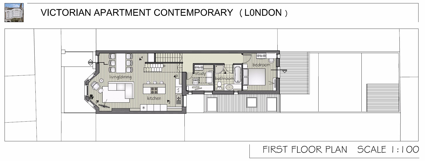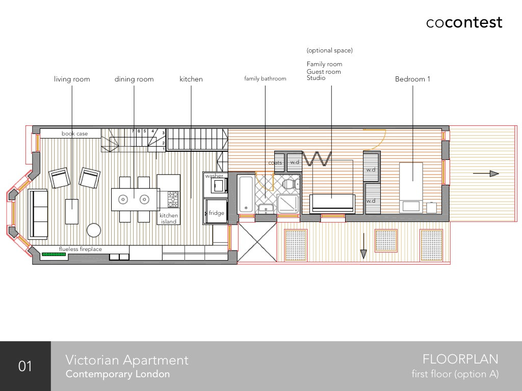 A full renovation project of an upper floor Victorian apartment from 2 bedroom to a 3 bedroom luxury, contemporary & classic elegant space. The basic space layout has been completed by architect and now the creative journey begins. The living room will be opened into kitchen dining/entertaining space, but needs to be functional for a young professional couple, with or without children.