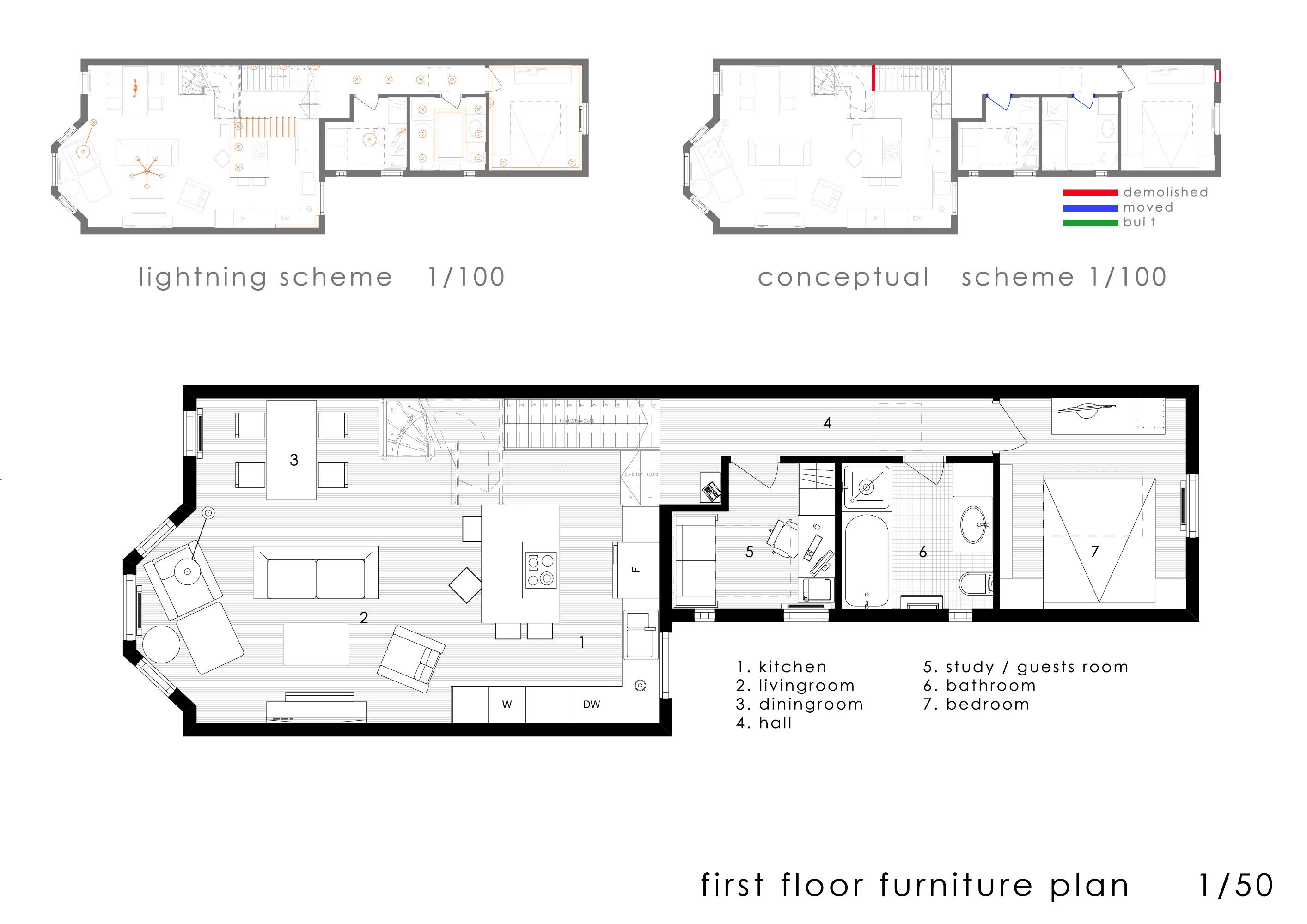 The most important challenge is how to unite the living room/diner and kitchen in terms of wall space and also the hallway between the kitchen & staircase.