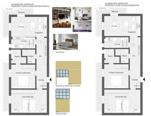Ciao a tutti , ho un appartamento di 99 mq che si affaccia sul parco Archeologico di Marsala con vista sulle isole Egadi.  Il punto di forza del mio trilocale è la vista che si può godere dai balconi e particolarmente dal balcone ad elle che  circonda le due portefinestre. Su questo balcone , seppure stretto,  dalla parte  dx che che si affaccia sul parco mi piacerebbe creare un tavolo lungo la balconata e pieghevole che possa fungere da zona pranzo, potrei considerare l'ipotesi di creare una lavabo da inserire nella parte esposta verso sinistra . Sto riflettendo sulla possibilità di chiudere con le vetrate scorrevoli che consentano di proteggersi senza oscurare il panorama. i tetti dell'appartamento sono alti 3,50 m.. sarebbe utile sfruttare  al meglio lo spazio in altezza. vorrei una grande libreria a tutta parete ( libreria soppalco?). In questa stanza soggiorno- salotto considero l'idea di spostare la porta di accesso dal corridoio verso sinistra in modo da ottenere una nicchia lungo il corridoio ( ampio  sul quale al momento si affacciano tutte le porte interne)  per creare un armadio e spazi organizzativi da sfruttare, dispongo di un armadio bianco a 4 ante a persiana della Mazzei che vorrei inserire in questo spazio. la casa deve ospitare 3 persone , una delle 2 camere attuali è molto grande  e potrebbe essere arredata creando  2 zone separate, attrezzate di zona studio  per i miei figli universitari. anche in questo ambiente si potrebbe sfruttare lo spazio in altezza.  Devo ricavare zona ripostiglio e dispensa.  Al momento la zona lavanderia è nell'unico bagno, anche la porta del bagno si apre sul corridoio d'ingresso e non mi piace molto. Mi piacerebbe ricavare un altro bagno anche piccolo.