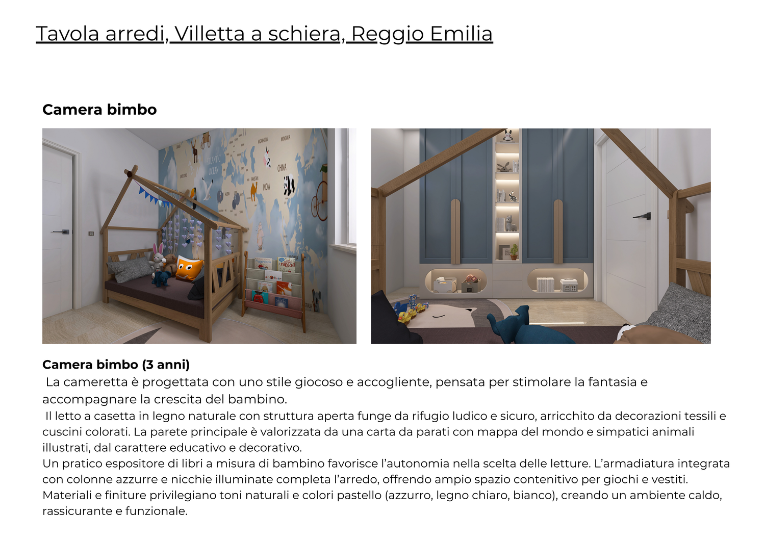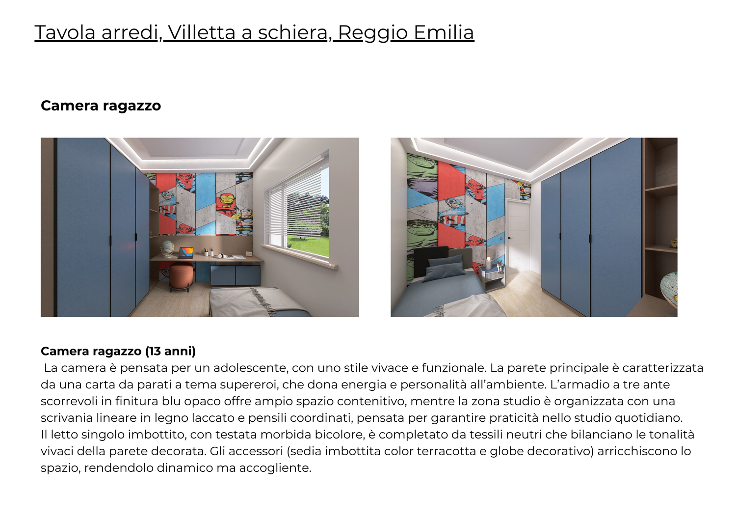 Le camere da letto sono state progettate pensando al comfort e alla funzionalità: la stanza del 13enne con arredi dinamici e tonalità fresche; la cameretta del bambino più piccolo con un’atmosfera accogliente e giocosa, adatta alle sue esigenze di crescita.