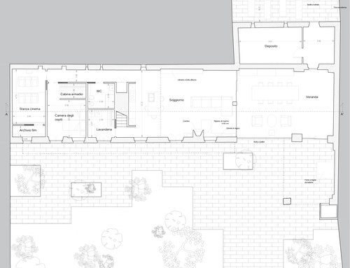 Vorrei prevedere al piano terreno: cucina + veranda/ soggiorno / una piccola sala cinema adiacente al soggiorno / una stanza degli ospiti / lavanderia e bagno. (preferirei un bagno più piccolo con la vasca per dare maggior spazio alla lavanderia)