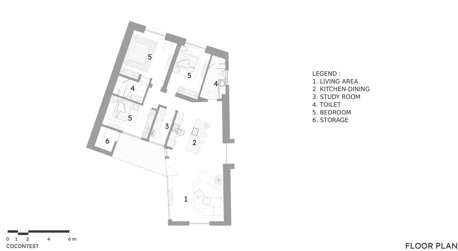 From the existing plan.., the -tend to be- long plan on the right wing is suitable for the LDK (Living-Dining-Kitchen), and when we put large window there, the space would be tremendous.