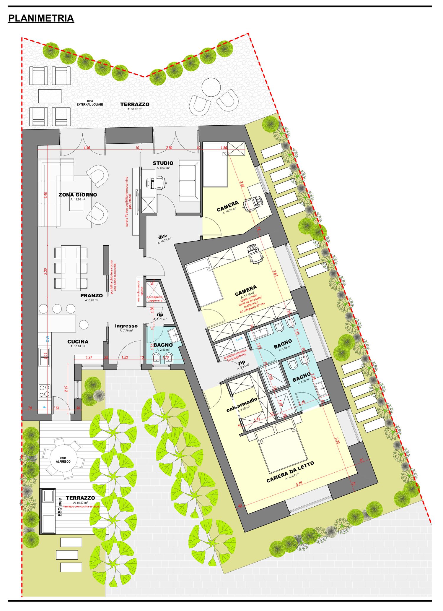 È previsto inoltre uno studio con doppio accesso, sia dalla zona giorno che dalla zona notte, arredabile con divano letto e trasformabile all’occorrenza in camera per ospiti. Se necessario, lo studio può essere fuso con una camera da letto per ottenere uno spazio più ampio.