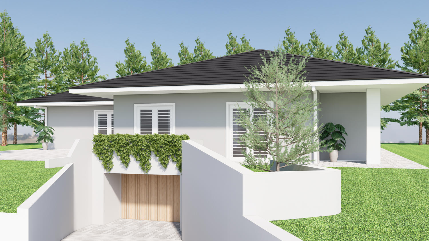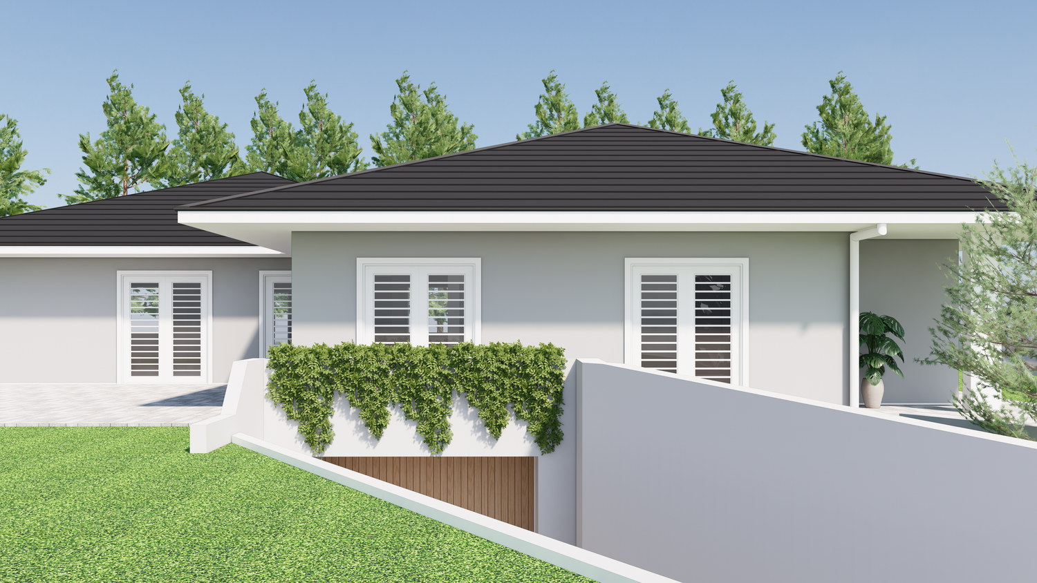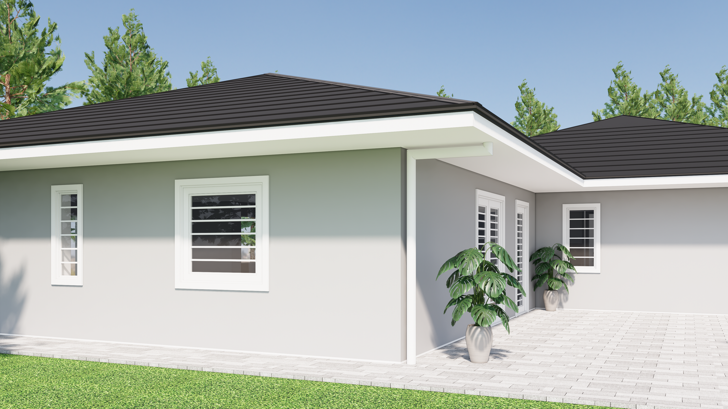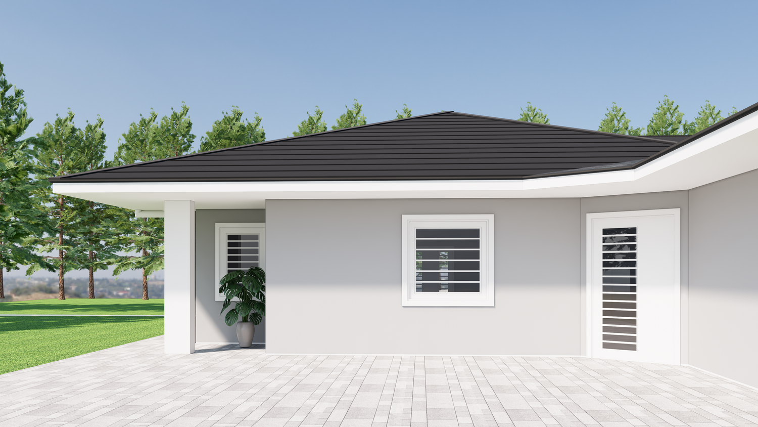 Ho sostituito il tetto con uno in metallo nero, conferendo alla casa un aspetto moderno, completato dalla vernice grigia per le pareti esterne e dal bianco per porte e finestre.