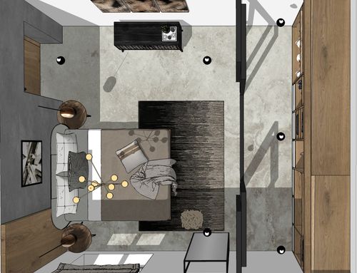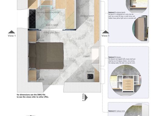 Modern style. Functional walk-in closet, without making the bedroom too small. It would not be the preferred option, but we would be willing to give up the window