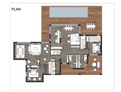 I’d like the design to be modern and plain. I’d like to see wood, stone, steel and glass. Maybe you could enrich the main minimal style with parts in different styles.
