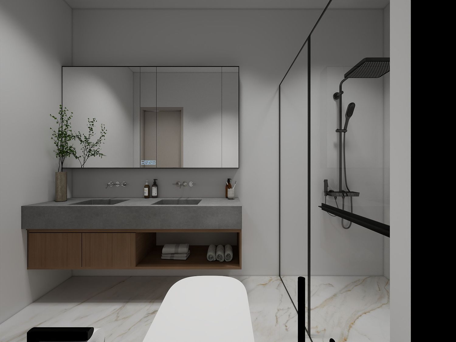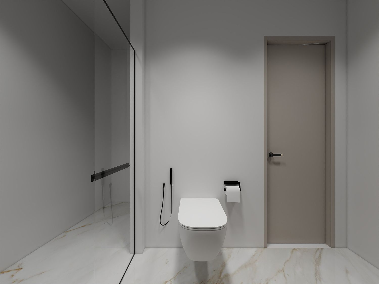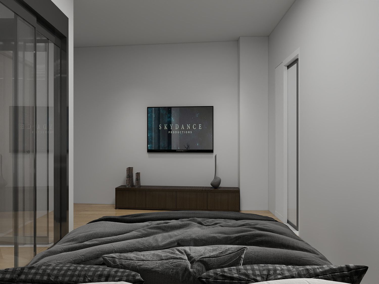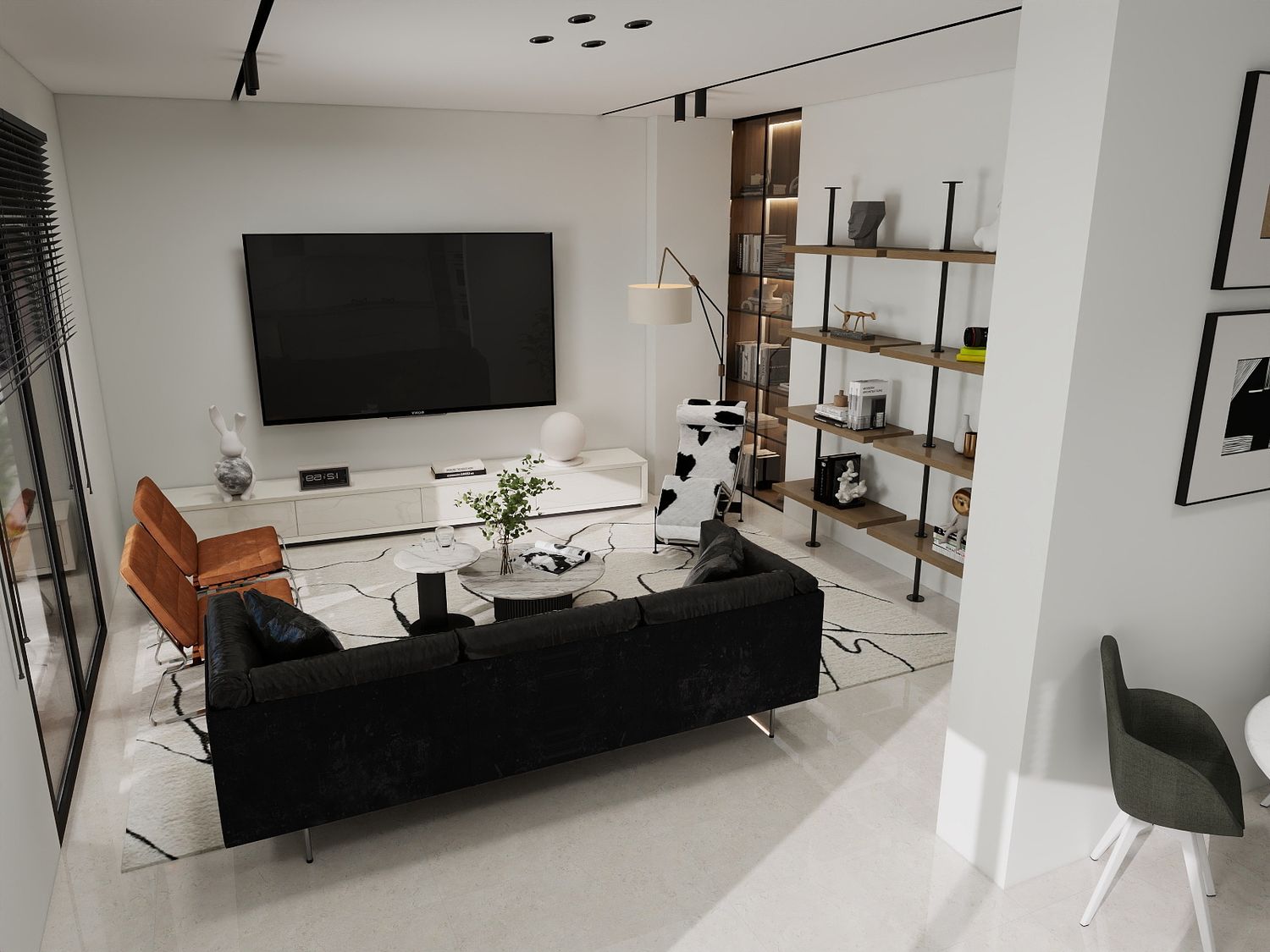 In the second option, the concept shifts toward prioritizing the living area as the main feature of the apartment. To achieve this, I slightly reduced the space allocated to the bedrooms and restrooms, allowing for a significantly larger living room. This creates a more open, spacious feel, making the living area the central hub of the home—ideal for gatherings and maximizing the connection with the balcony.