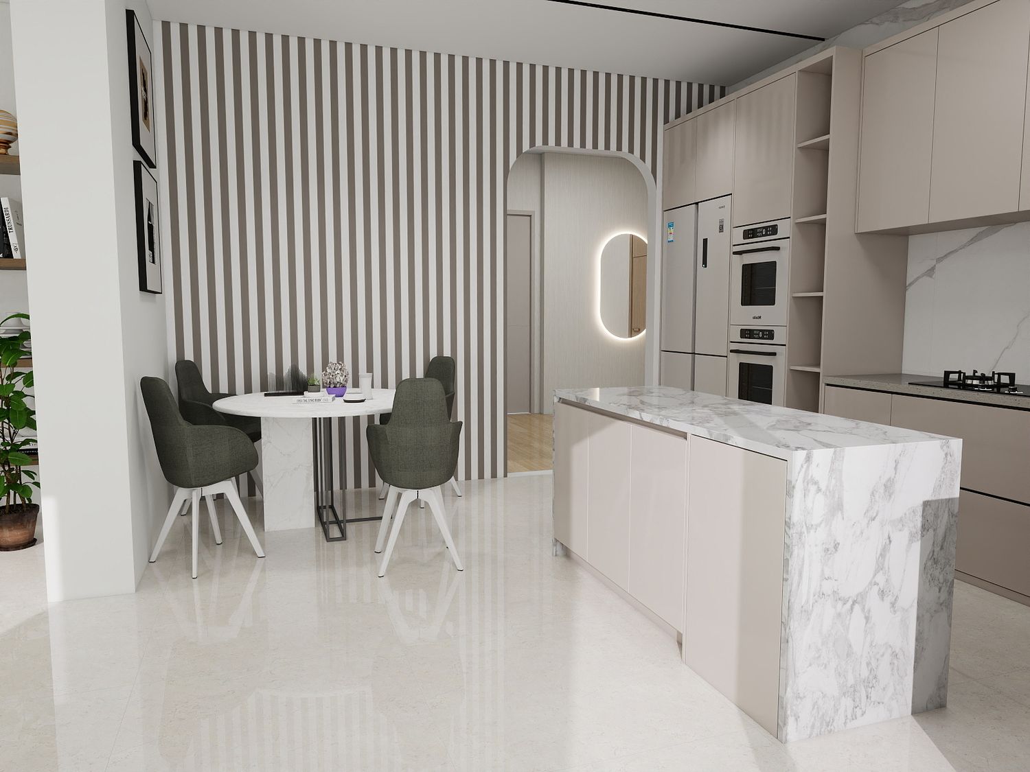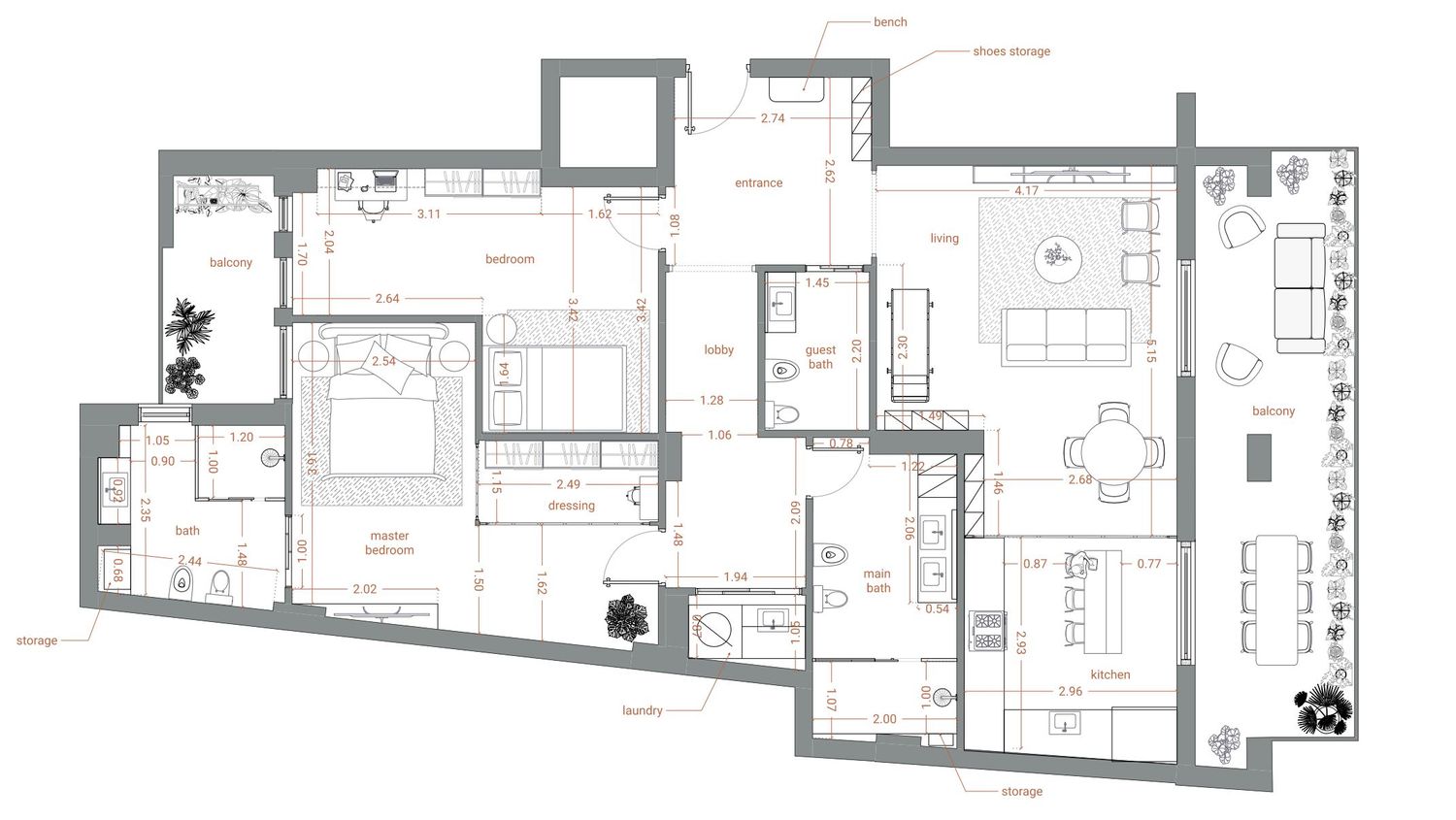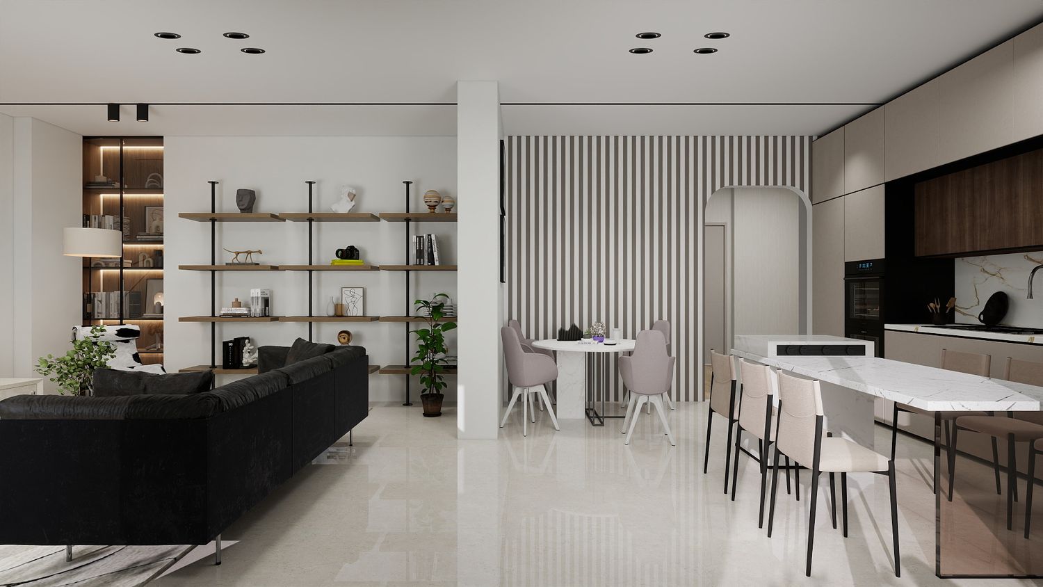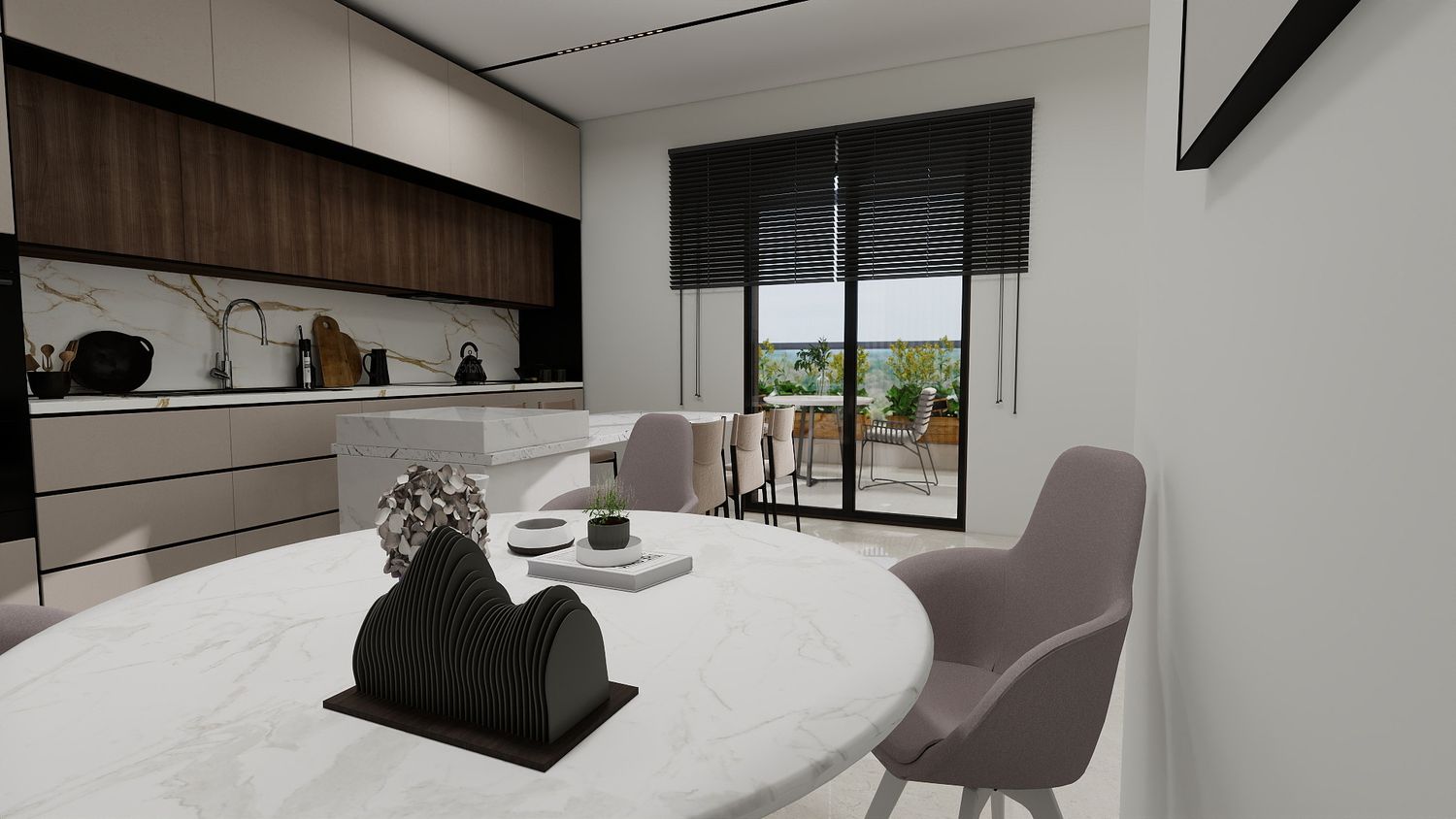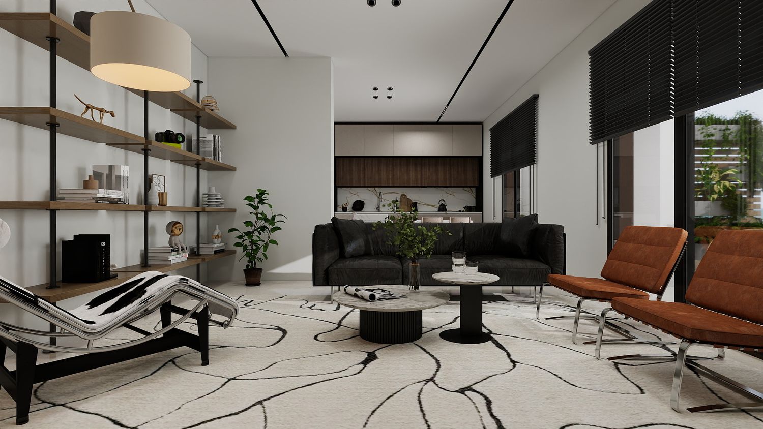 In the second option, the concept shifts toward prioritizing the living area as the main feature of the apartment. To achieve this, I slightly reduced the space allocated to the bedrooms and restrooms, allowing for a significantly larger living room. This creates a more open, spacious feel, making the living area the central hub of the home—ideal for gatherings and maximizing the connection with the balcony.