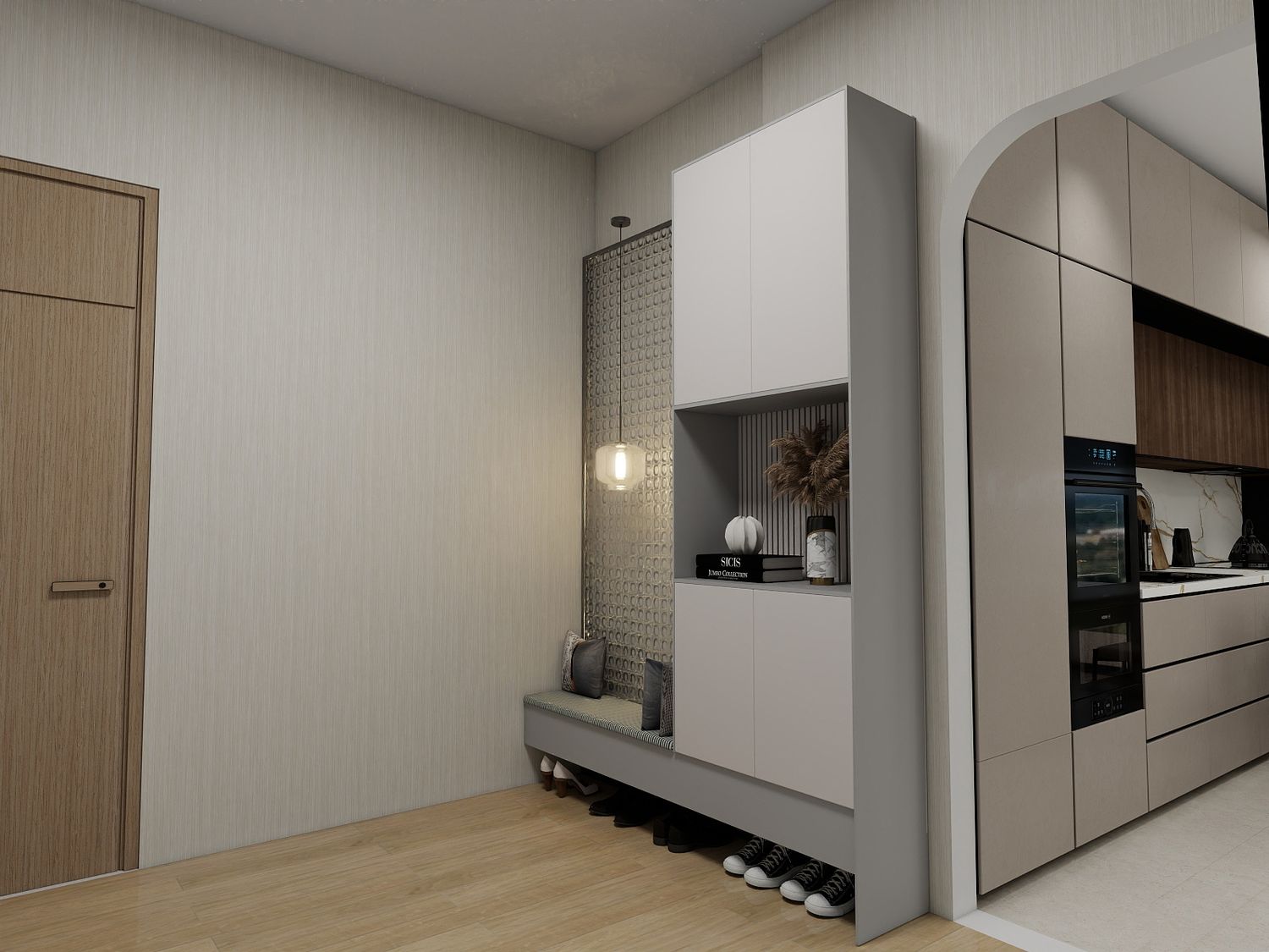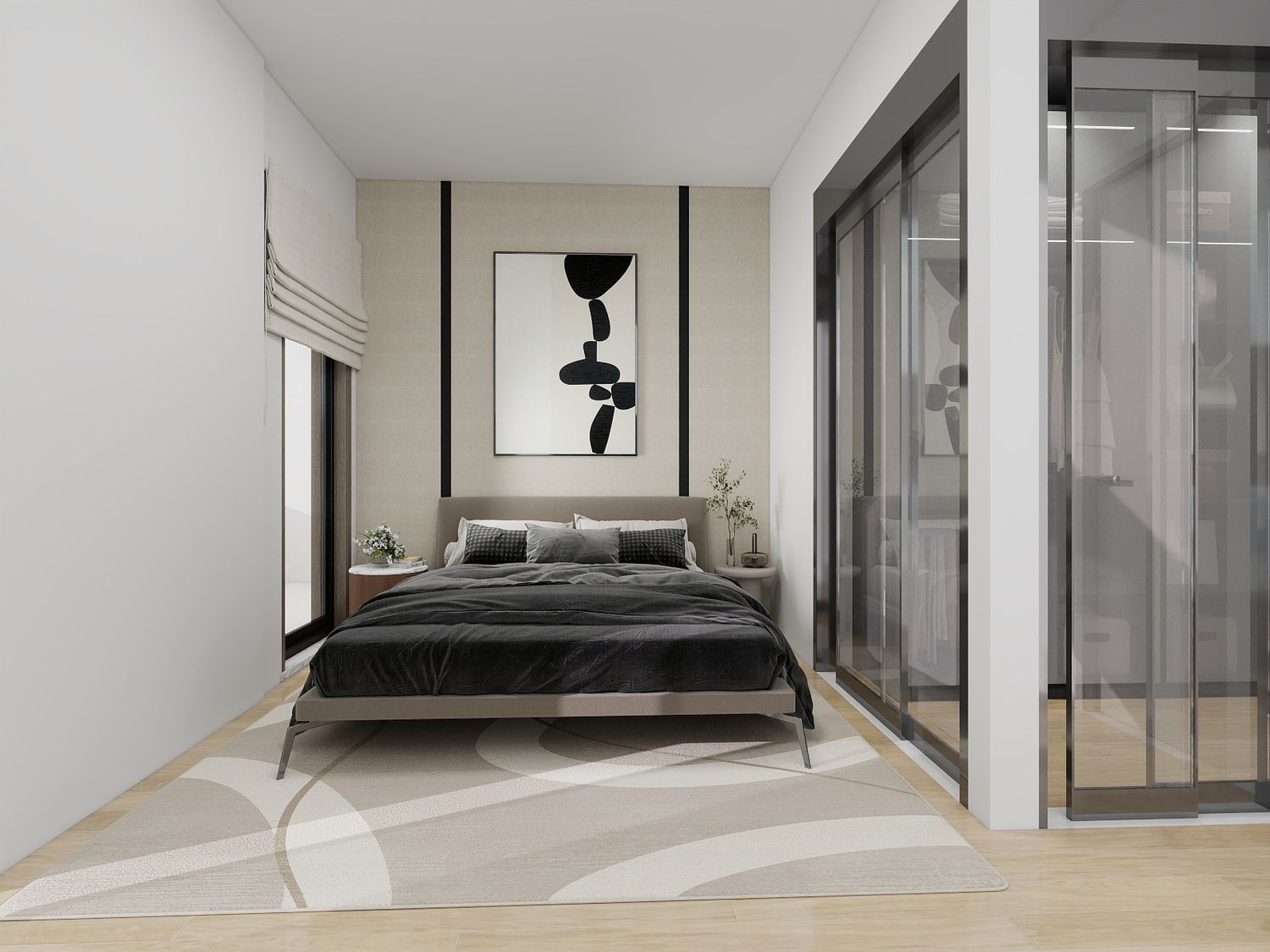 In the first option, the focus is on achieving a well-balanced distribution between the private and public areas. The bedrooms and restroom zone are designed with comfortable proportions, ensuring functionality and privacy, while the living room is given a generous space that also benefits from the connection to the balcony, creating a bright and pleasant atmosphere.