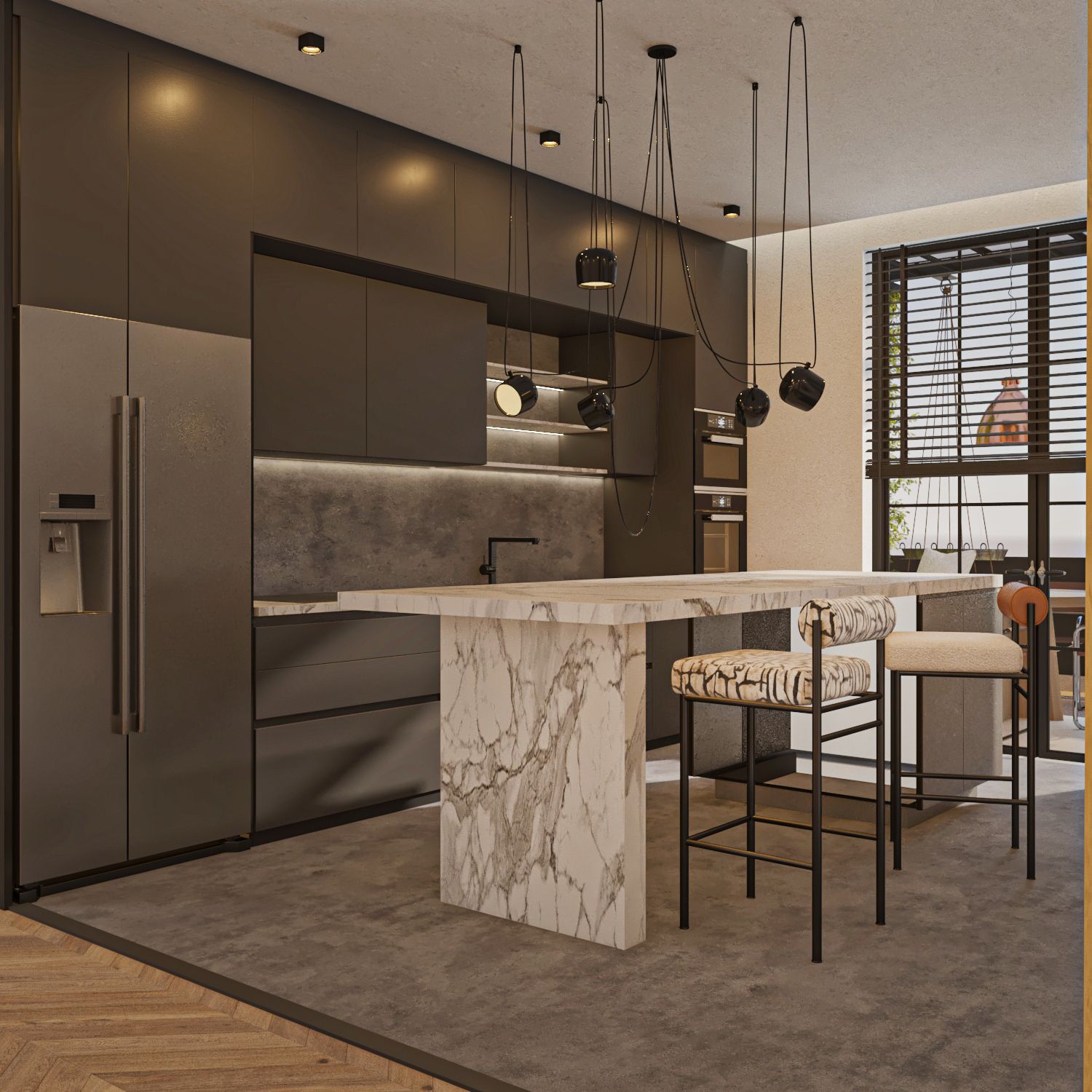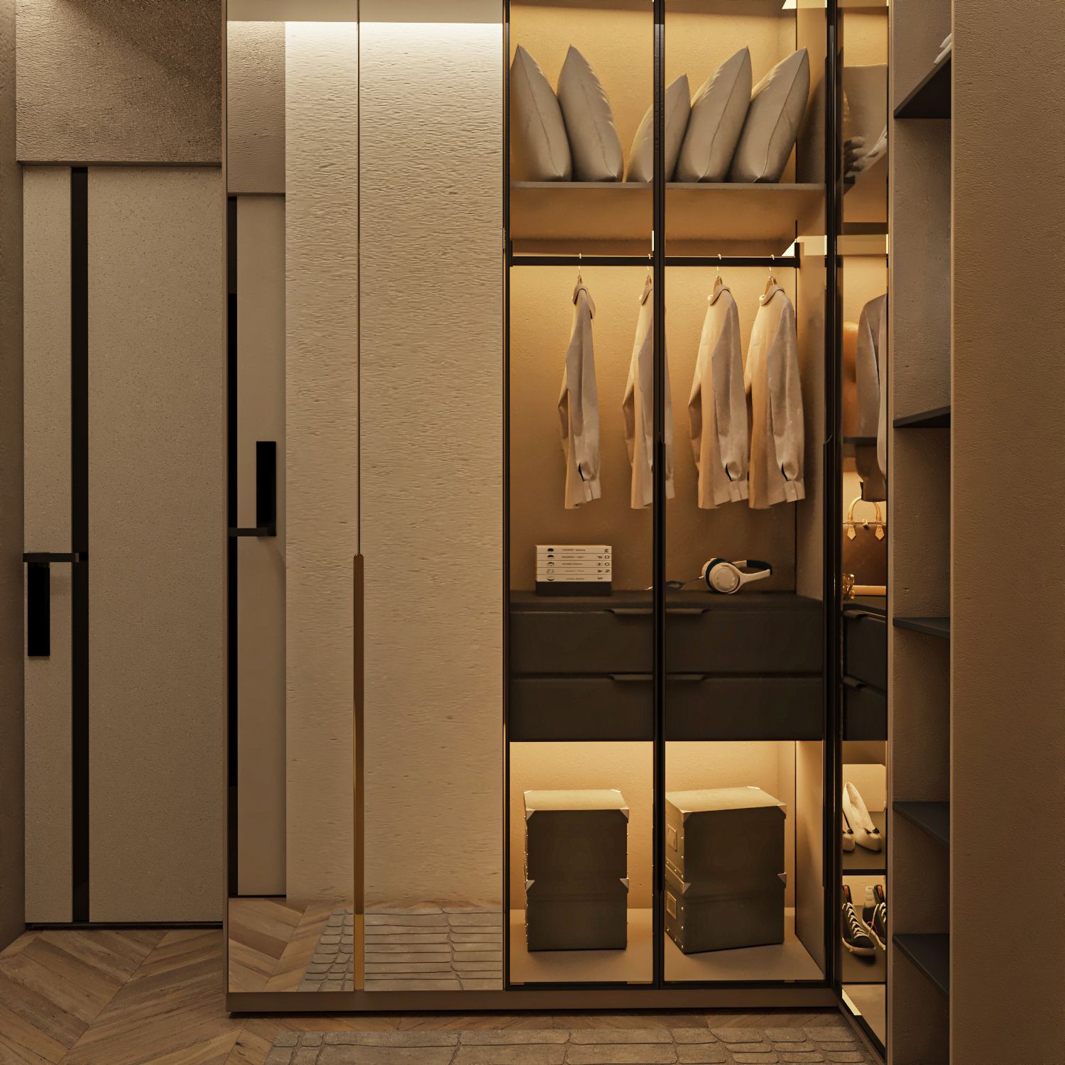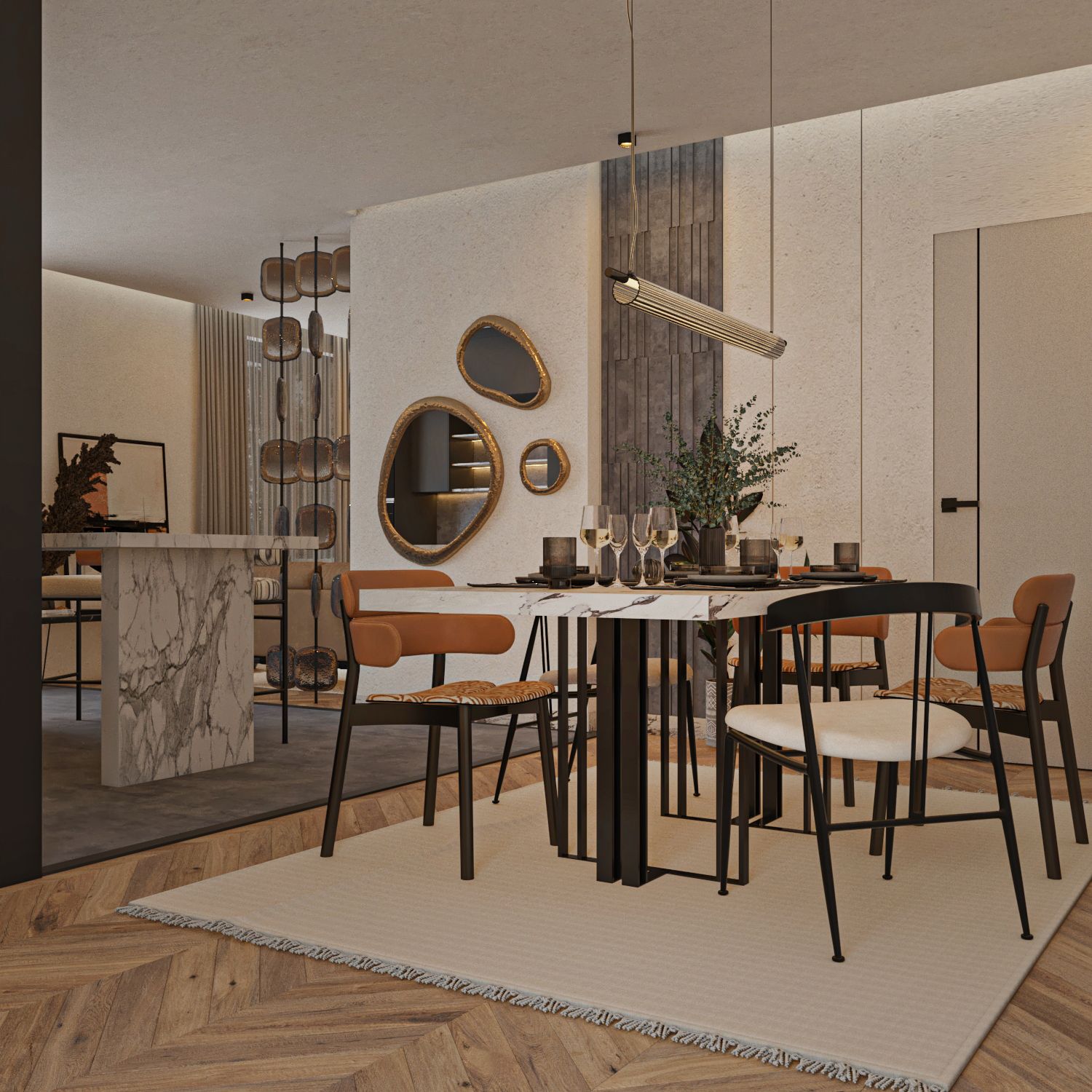 Per lo stile generale, abbiamo utilizzato un mix di minimalismo moderno con sottili tocchi di ispirazione loft. È stata scelta una palette di colori caldi e visivamente accoglienti per valorizzare la luce naturale e creare un'atmosfera invitante in tutto l'appartamento.