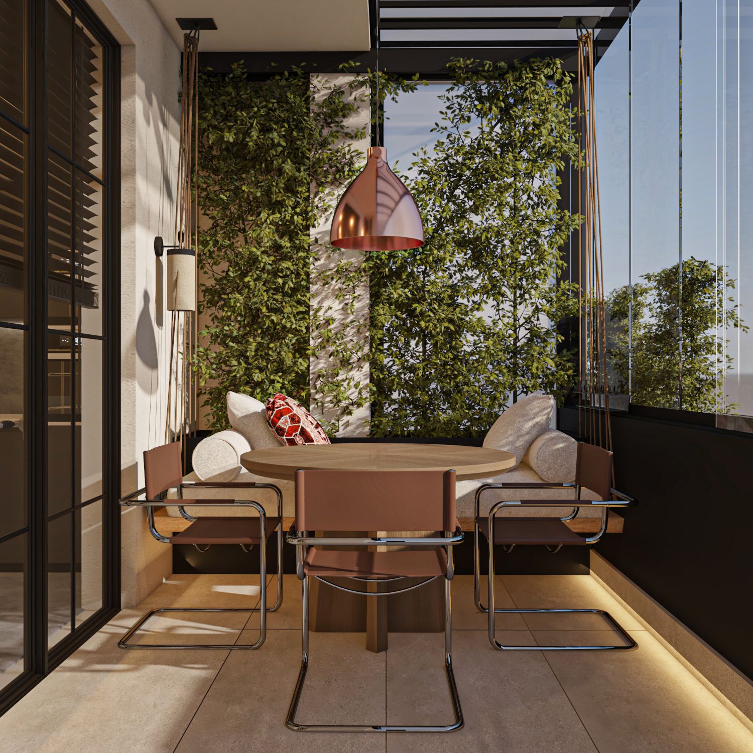 The terrace has been designed as a panoramic winter garden, divided into a lounge area and a dining area. This allows it to function as an extension of the interior living space.