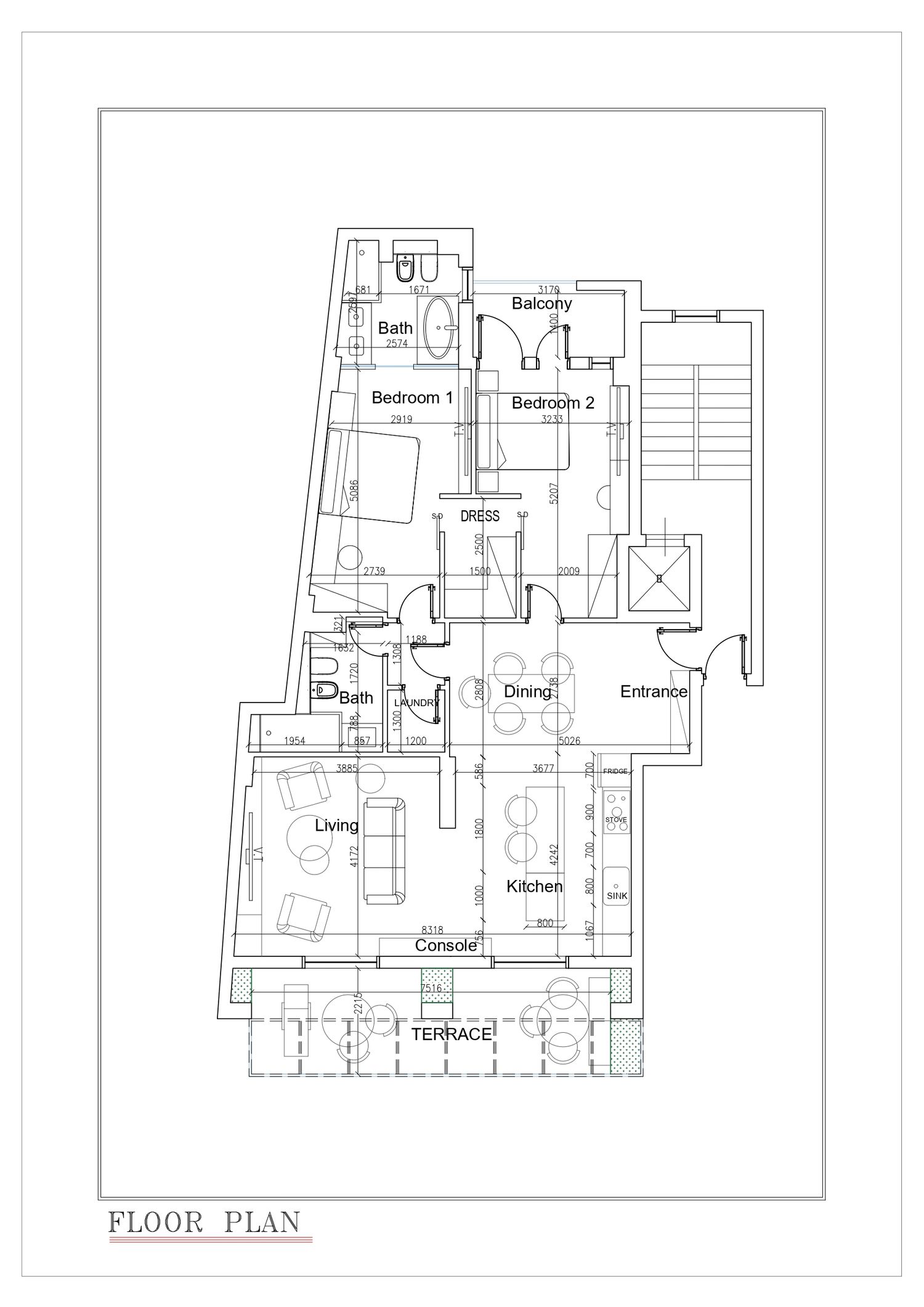 As requested, the apartment has been organized with a clear separation between the day area and the night area, giving greater importance to the day zone in terms of space and natural light. The day area has been divided into a living room, dining area, and kitchen, with the kitchen placed at the center as the main focal point of the home.
