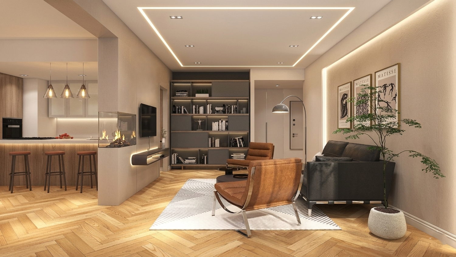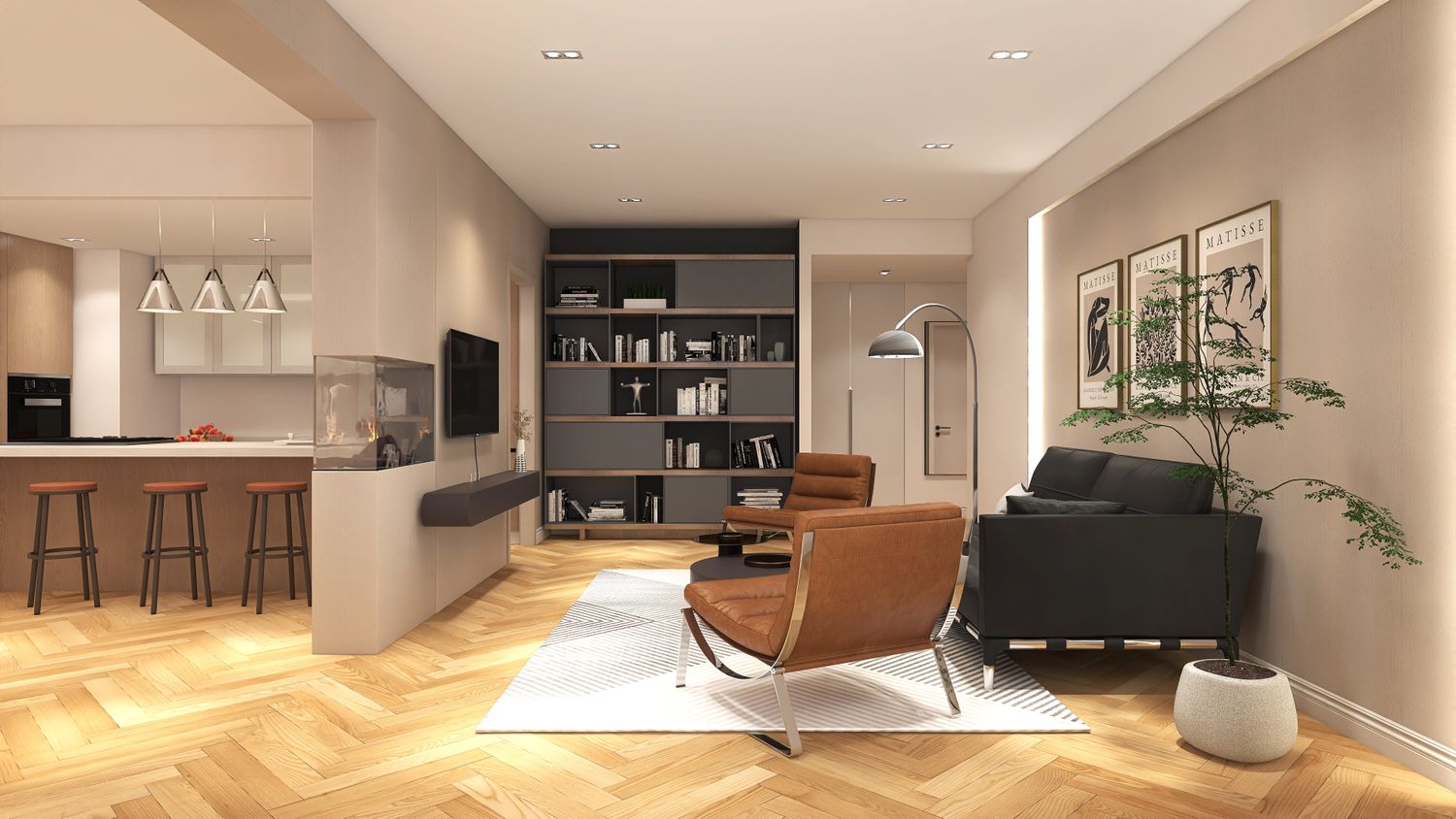 It is important to note that the accompanying visualizations are intended to communicate the overall design direction and atmosphere. Certain elements, including furniture details and specific finishes, may vary during further project development.
