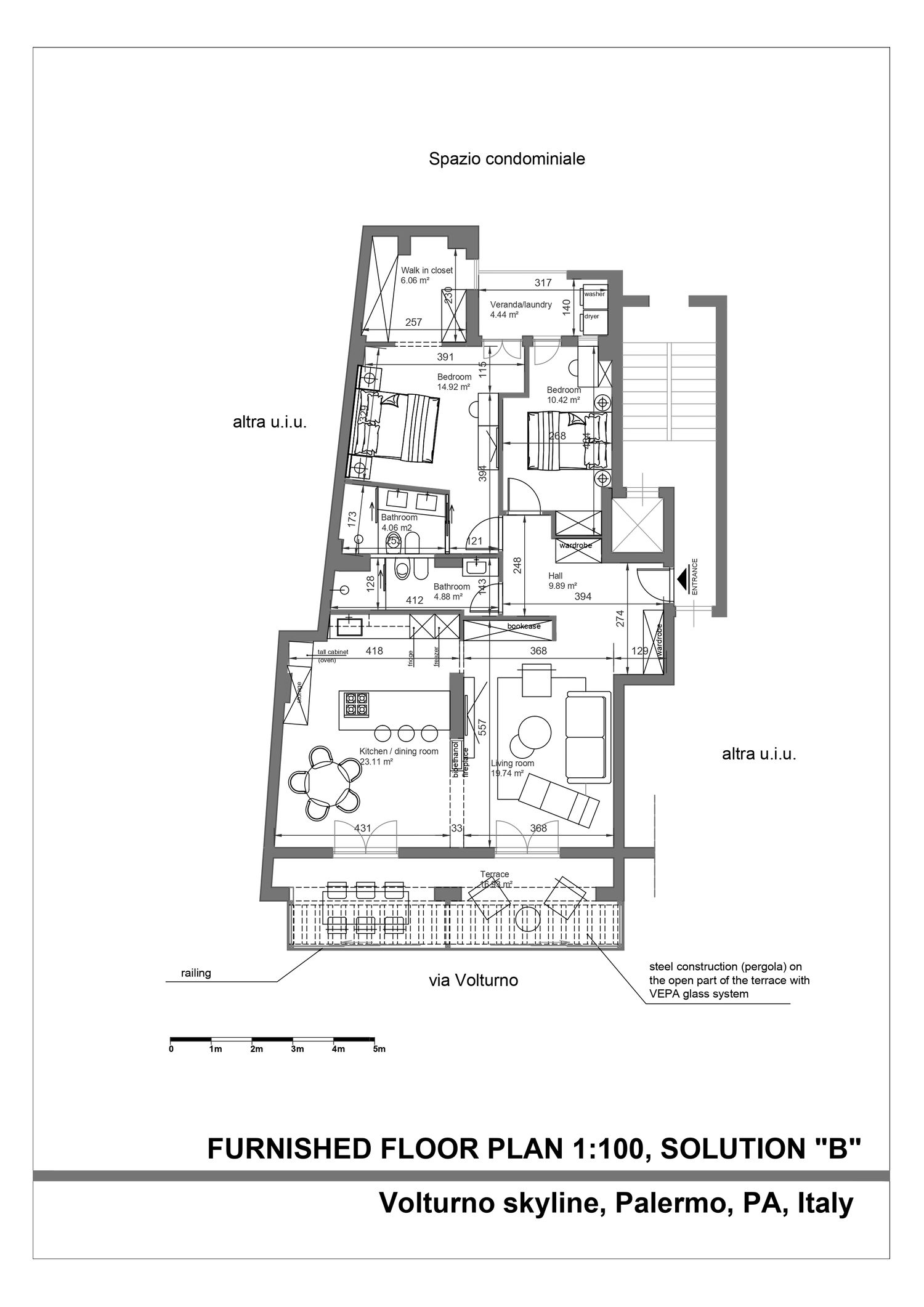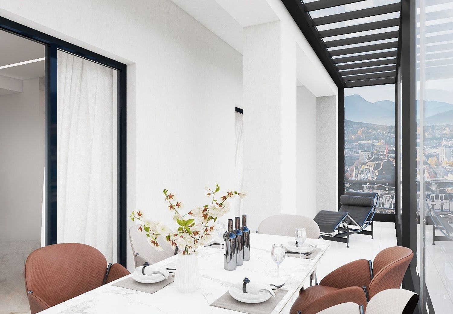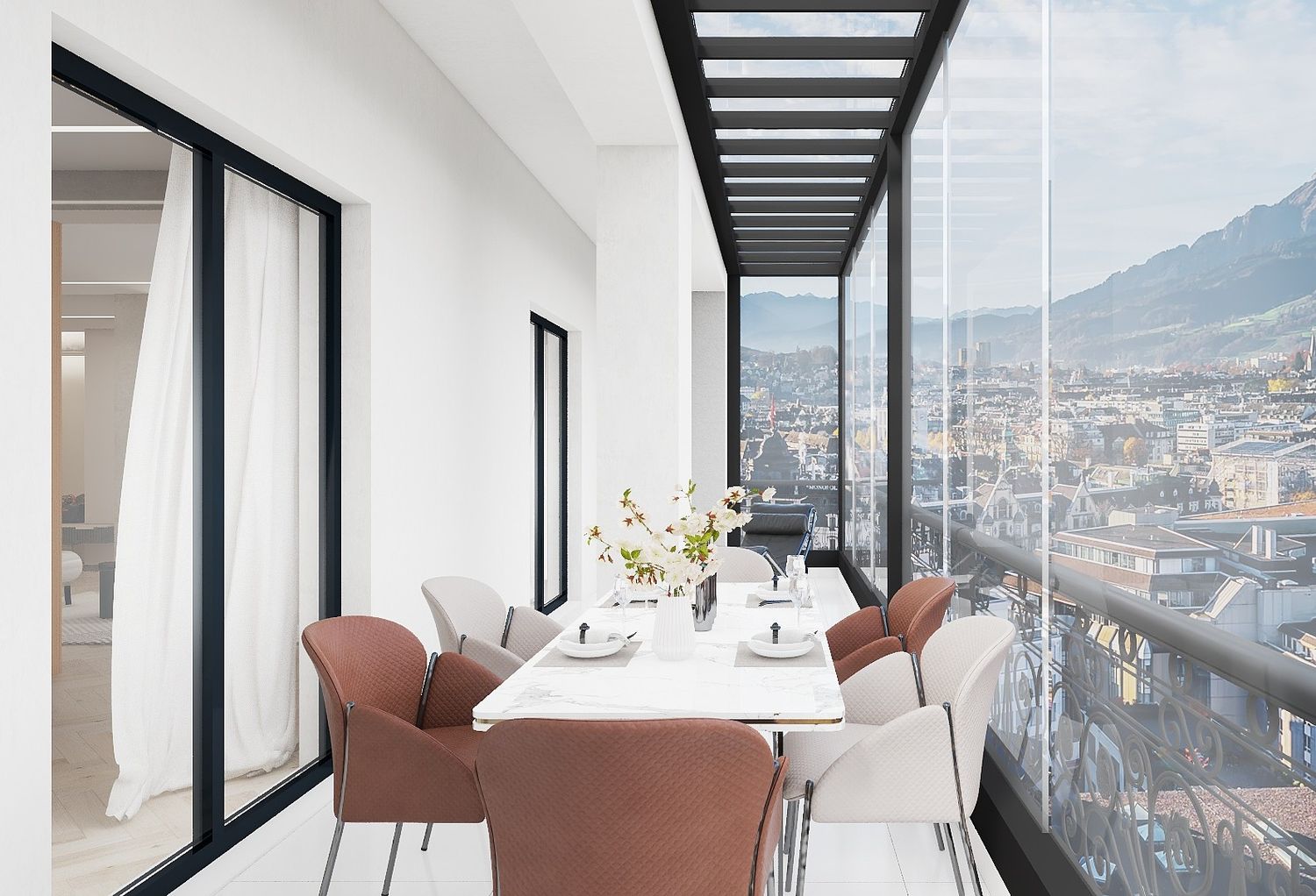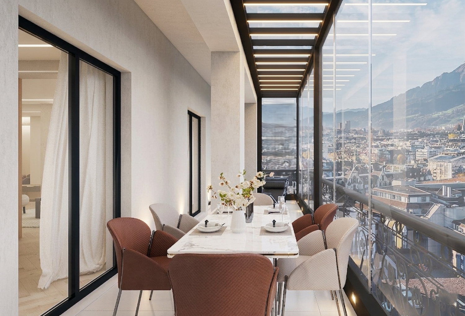 The relationship between interior and exterior spaces has been carefully considered. The terrace is envisioned as a true extension of the living area, in line with your request for year-round usability. It is envisioned as steel and glass pergola with movable vertical panels, positioned on the inner side of the railing. This intervention creates a flexible environment that can function as a winter garden, accommodating both dining and lounge settings.