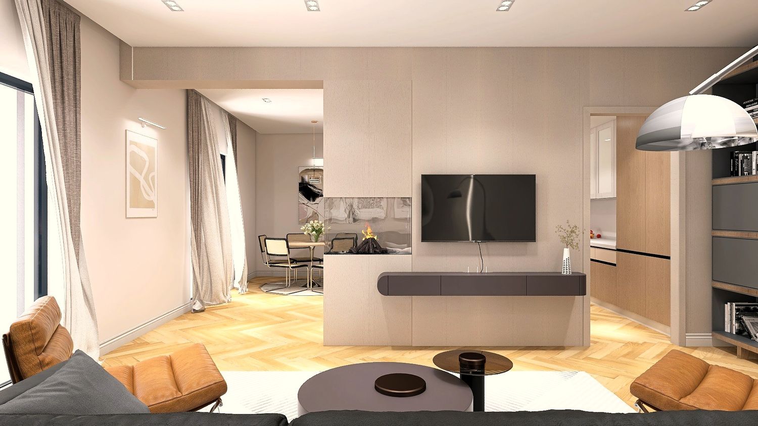 Following your brief, we have developed two design proposals for the apartment, primarily differing in the configuration of the night zone and the internal circulation. Both options are grounded in the same core principles—spatial fluidity, functional clarity, and a contemporary, minimalist expression—while offering alternative interpretations of privacy and movement within the home.