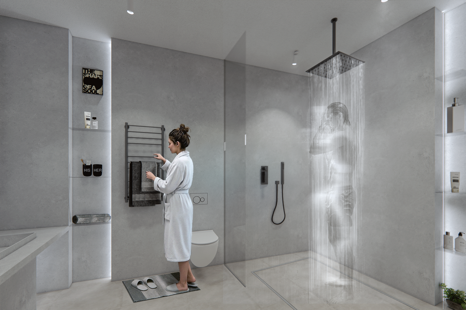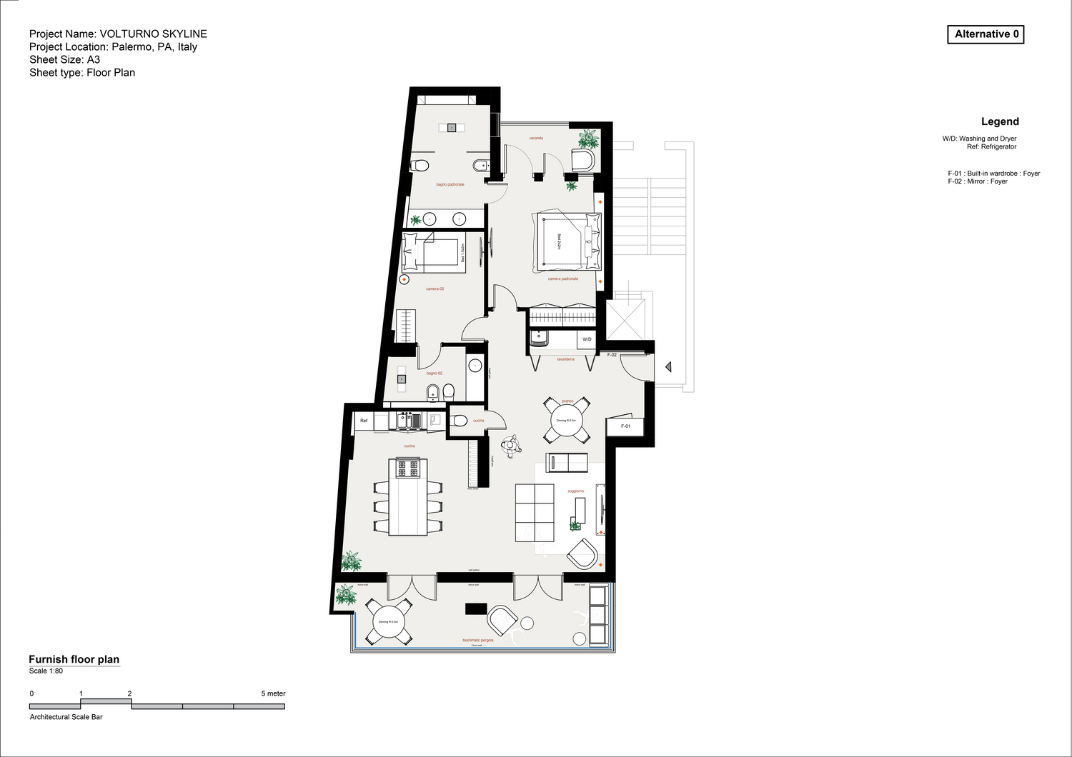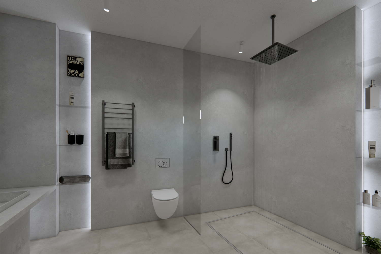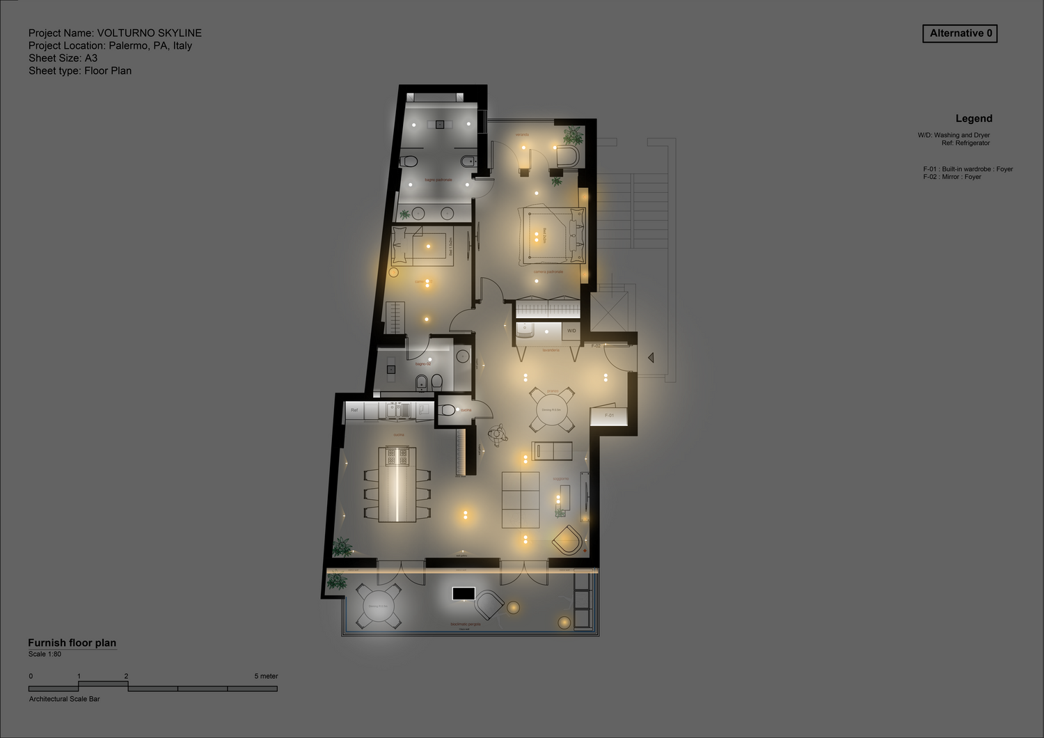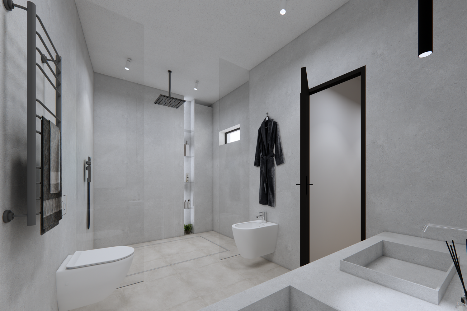 Entrando, sarete accolti da un ampio spazio open space. Un tavolo da pranzo con quattro sedie è posizionato al centro. A sinistra, abbiamo progettato un armadio a muro per riporre comodamente abiti e scarpe. Una volta chiusa la porta, un grande pannello a specchio sulla destra riflette sia la luce naturale che il panorama esterno. Adiacente si trova una zona lavanderia integrata, caratterizzata da un design a scomparsa che mantiene un'estetica minimalista.