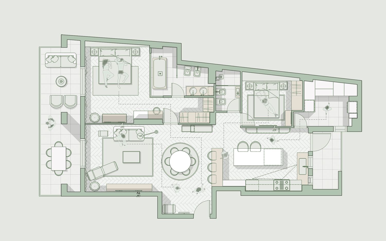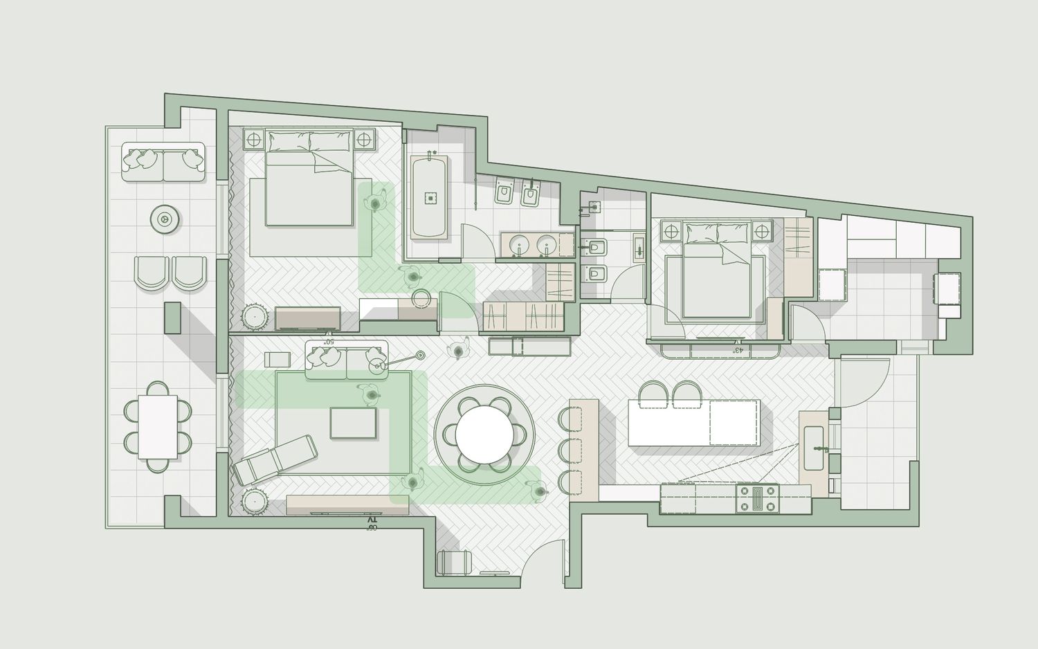 - Simulated user movement through the entire floor plan to ensure maximum circulation efficiency.