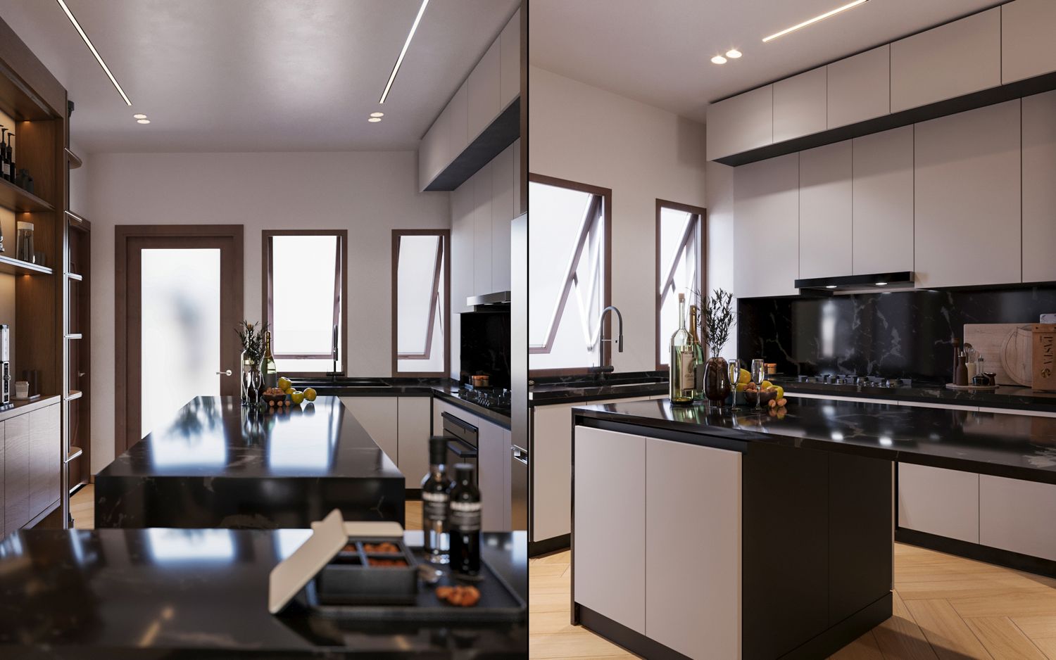 - Ensured an expansive, continuous view from the kitchen directly to the exterior terrace, prioritizing a feeling of openness.