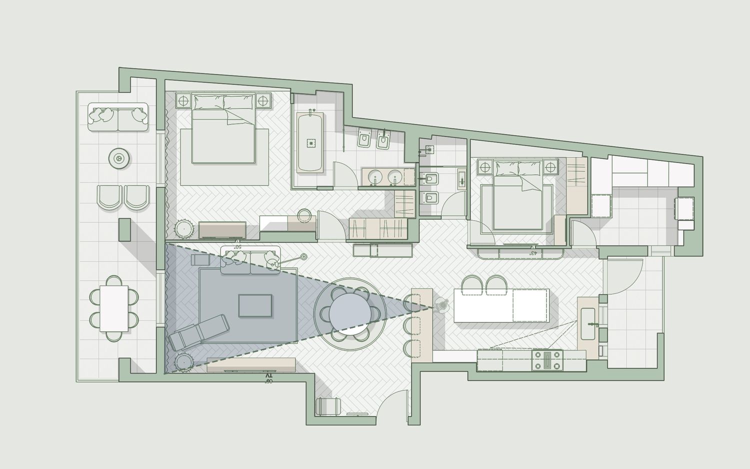 - Prevented any traffic pathways from crossing in front of the television, avoiding interruption for anyone viewing.