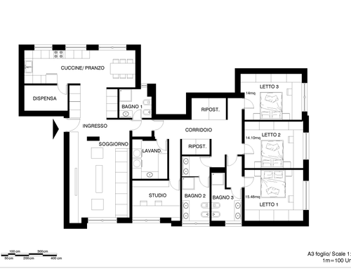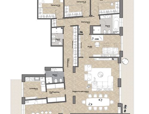 Siamo una famiglia di 4 persone, 2 adulti e due ragazzi di 16 e 13 anni, oltre che due gatti ;) Le necessità di base sono quelle di 3 camere da letto, 3 bagni (di cui due zona notte e 1 zona giorno), uno studio, una lavanderia ed un ripostiglio/dispensa oltre che ovviamente cucina e salone. Ci piace uno stile moderno, sobrio ed elegante che privilegi i colori chiari e neutri con qualche accenno più classico. Per la gestione degli spazi, siamo aperti sia a soluzioni open che di altro tipo.