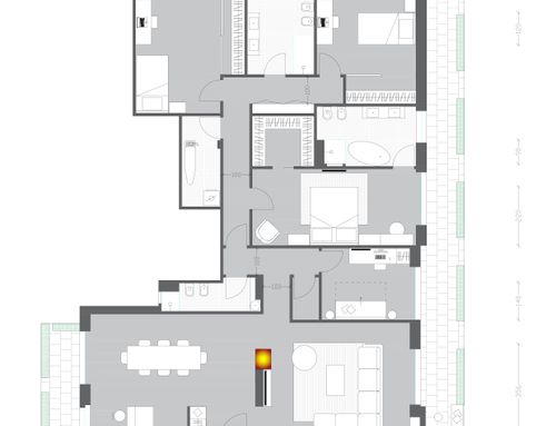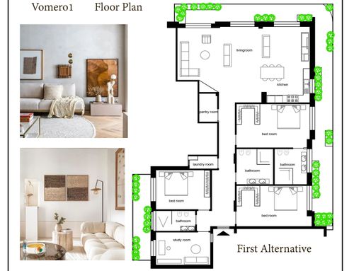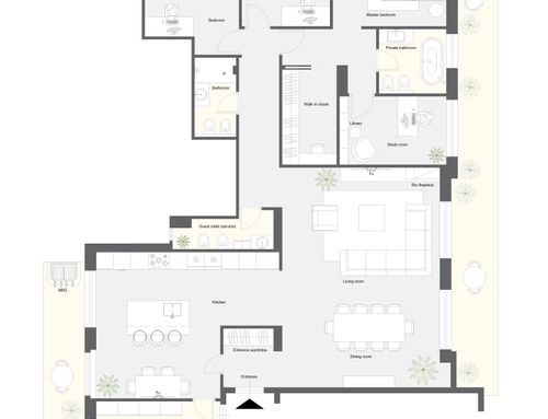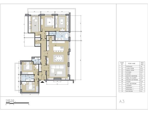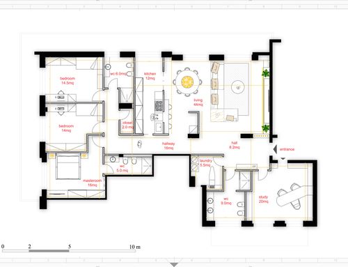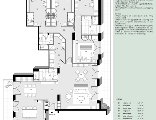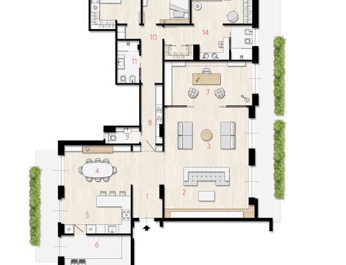 We are a family of 4 people, 2 adults and two boys aged 16 and 13, as well as two cats ;) The basic needs are 3 bedrooms, 3 bathrooms (two in the night zone), a study, a laundry room and a storage room/pantry as well as obviously kitchen and living room. We like a modern, sober and elegant style that favors light and neutral colors with some more classic touches. For the distribution of spaces, we can consider both open solutions and other types.