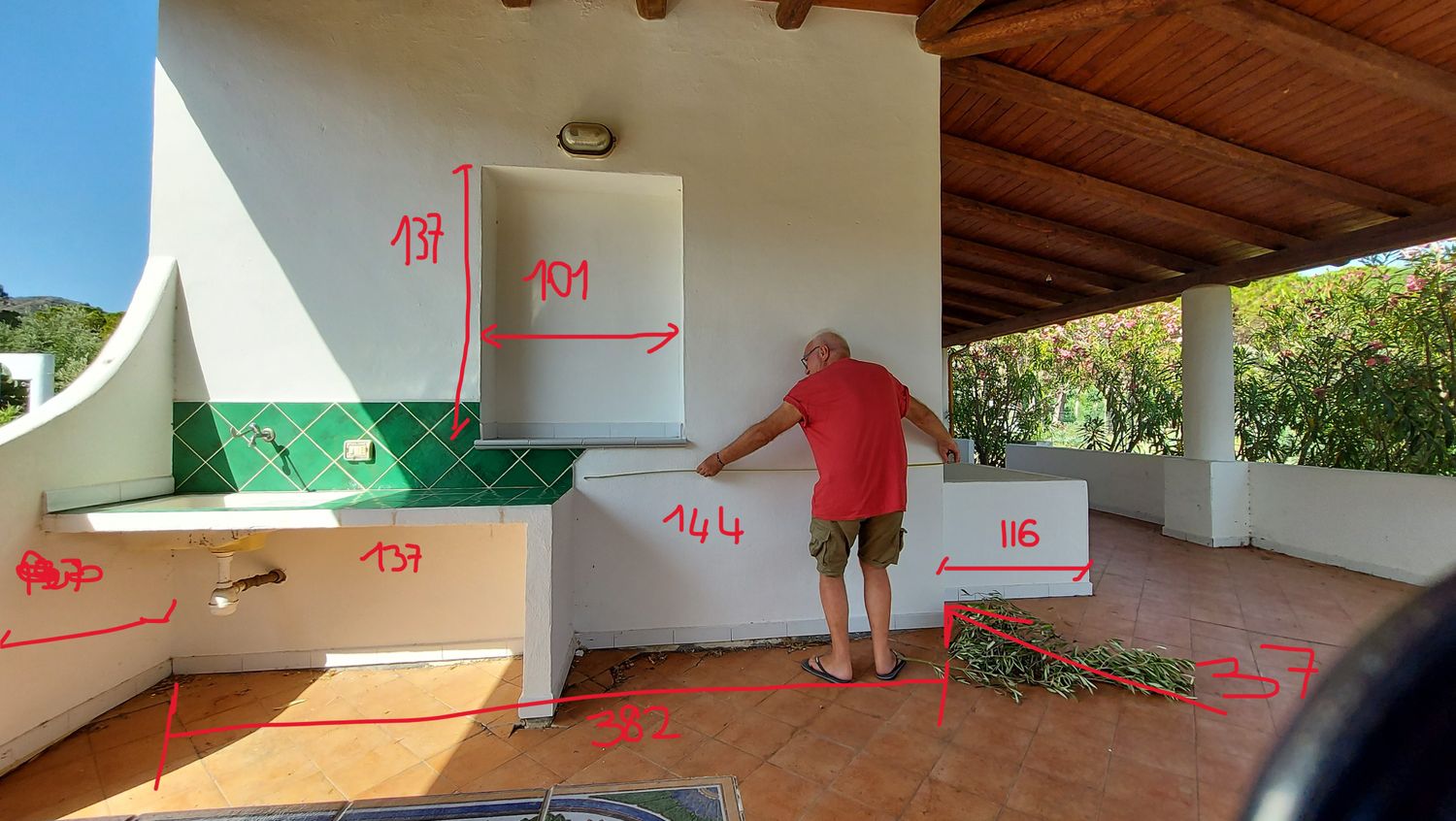 Construcción de cocina exterior de obra.