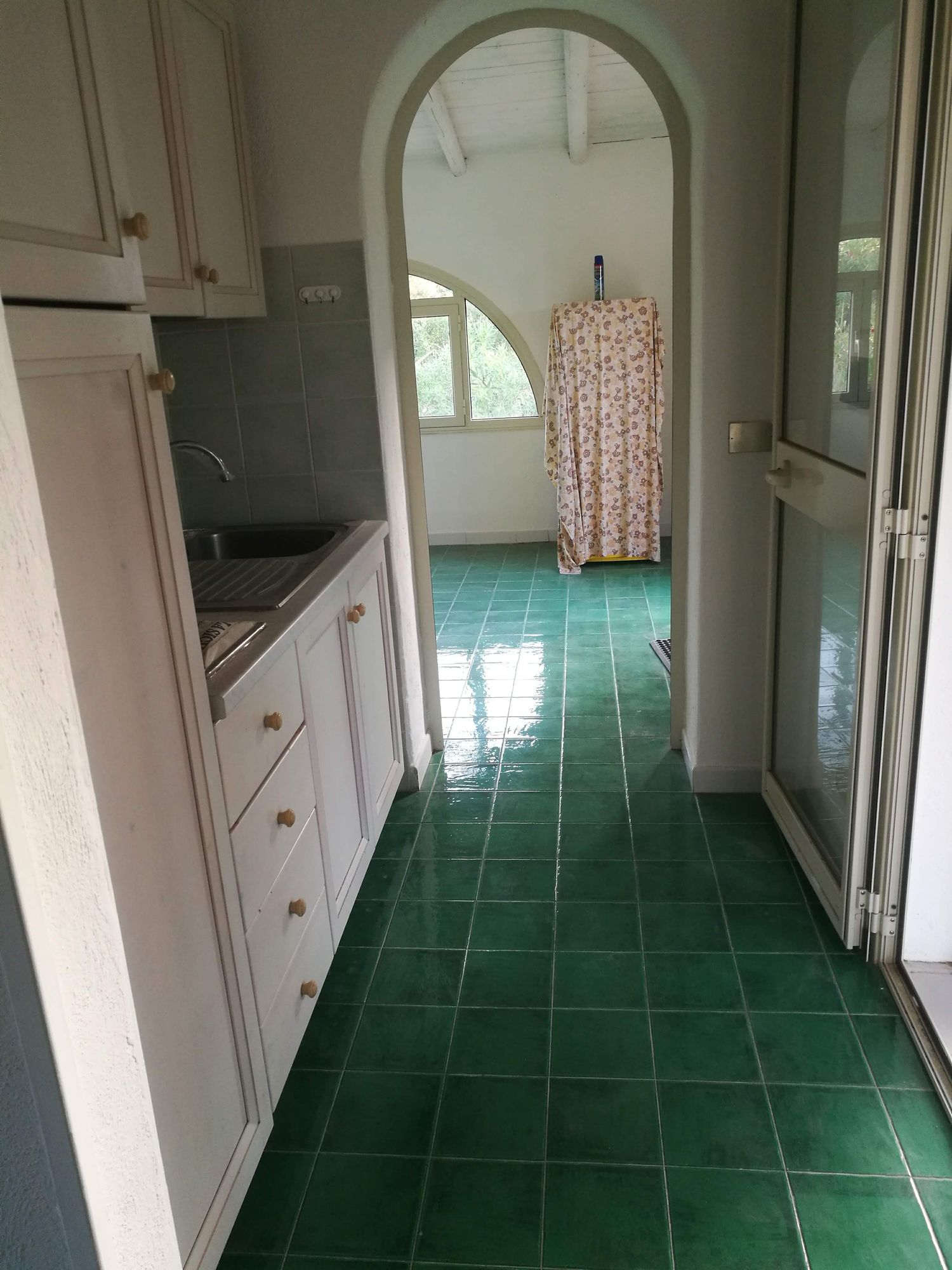 Opzione: mantenere pavimentazione verde quindi un idea arredo sul verde ocra oppure cambiare pavimentazione con colori chiari tipo pietra leccese