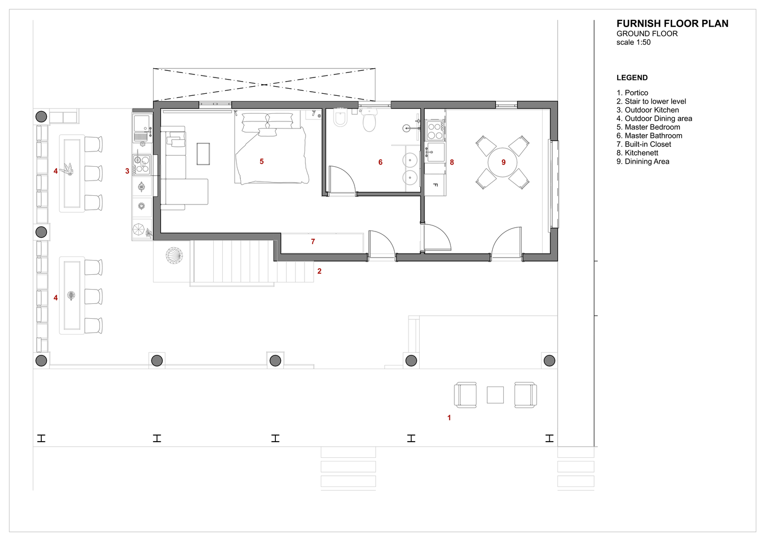 – Integrate the villa into a broader three-villa shared recreational estate