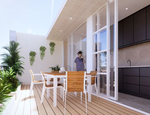 Costruzione di 5 appartamenti moderni su 2 livelli all'interno di una cortile comune silenzioso.