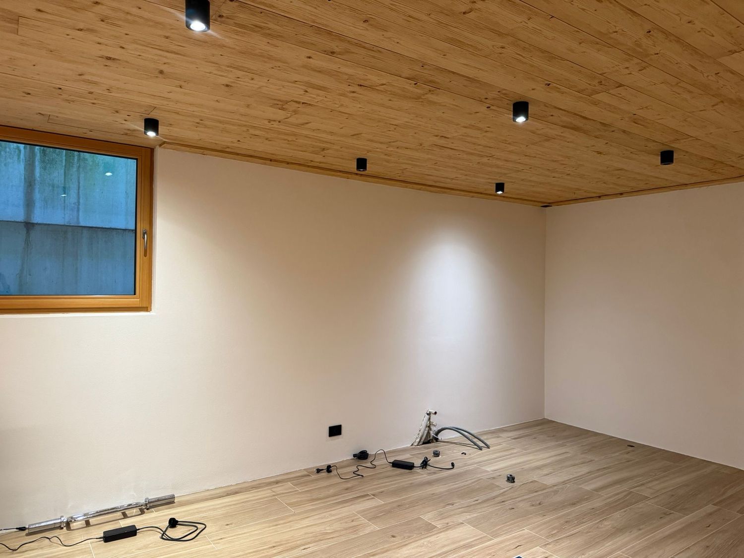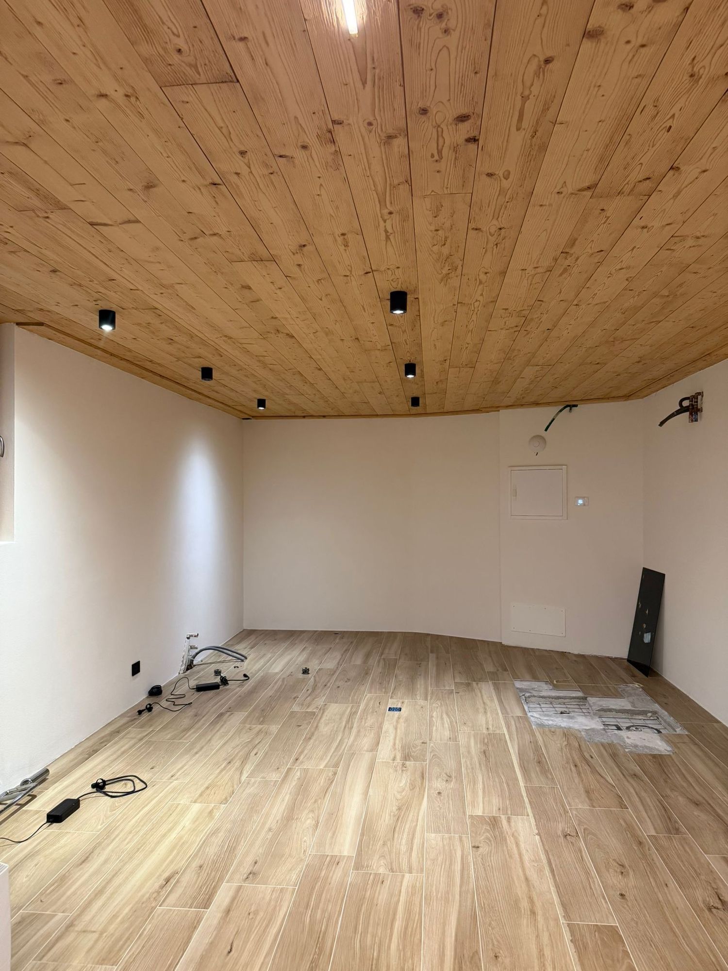 Nel controsoffitto di legno c'è un'intercapedine di 5cm dove è possibile far passare cavi elettrici per eventuale illuminazione o altro.