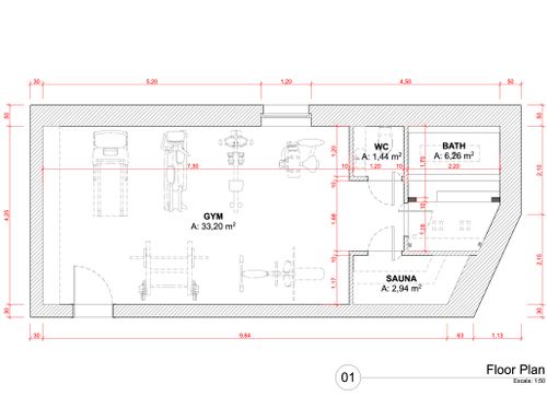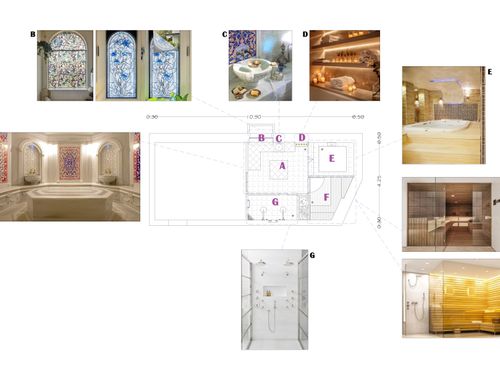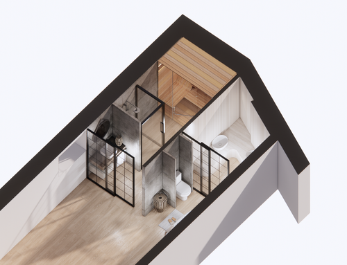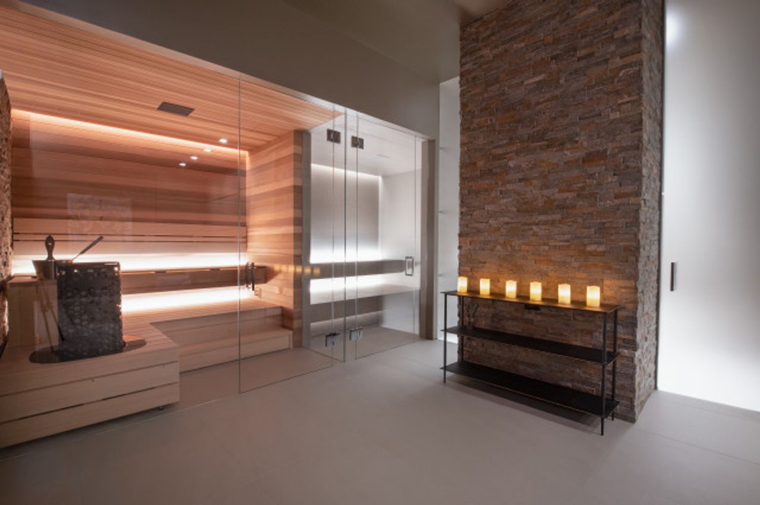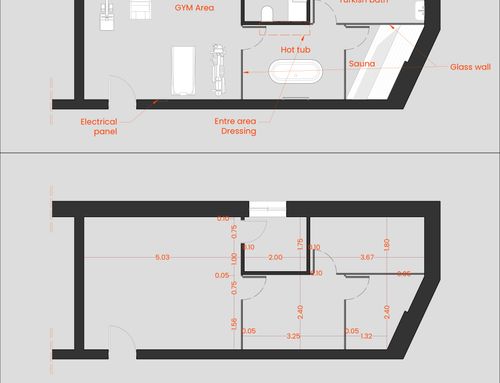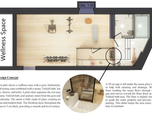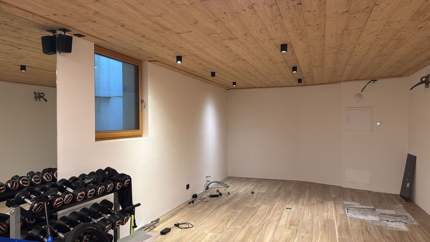In the basement, I have a room of about 40 square meters, where half is already used as a gym area, and in the other half I would like to create a wellness area complete with bathroom, sauna, Turkish bath, and possibly a hot tub.
